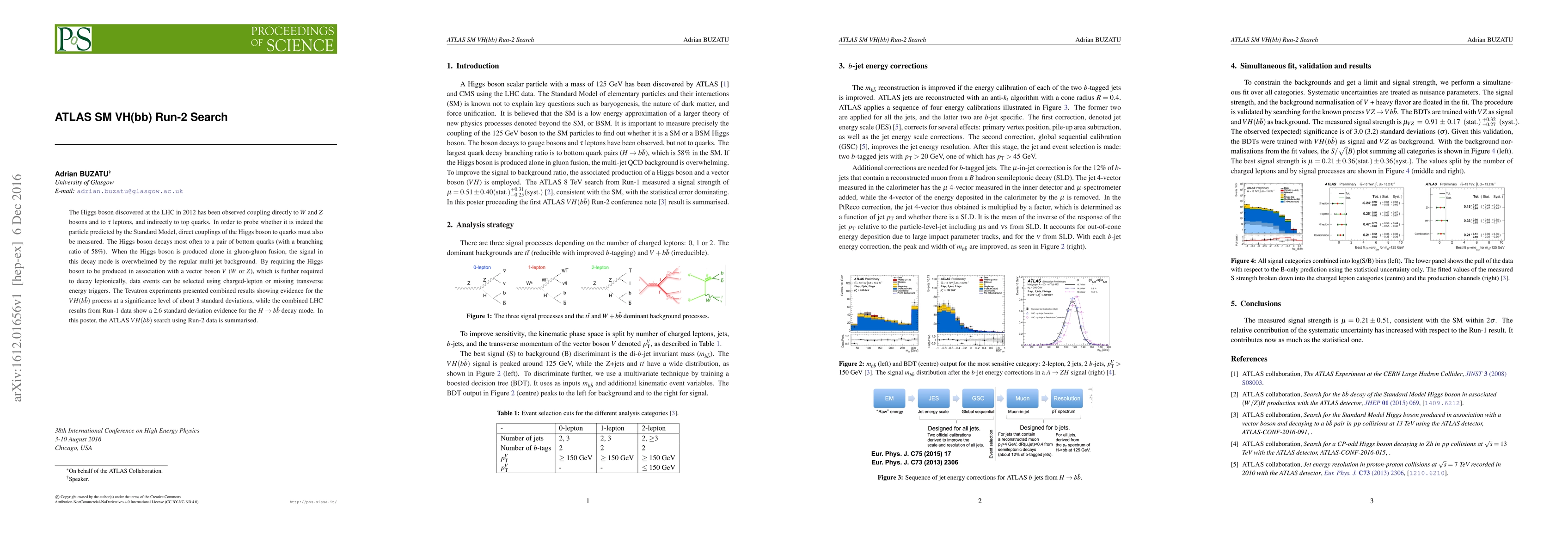 The ATLAS experiment at the LHC reports a search for Higgs boson production in association with a vector boson (VH), decaying into a bottom quark pair (bb) using Run-2 data. This method reduces background noise, allowing for more precise measurements. Previous Run-1 data showed 2.6 standard deviation evidence for H -> bb decay, and this paper updates those findings with Run-2 data.
