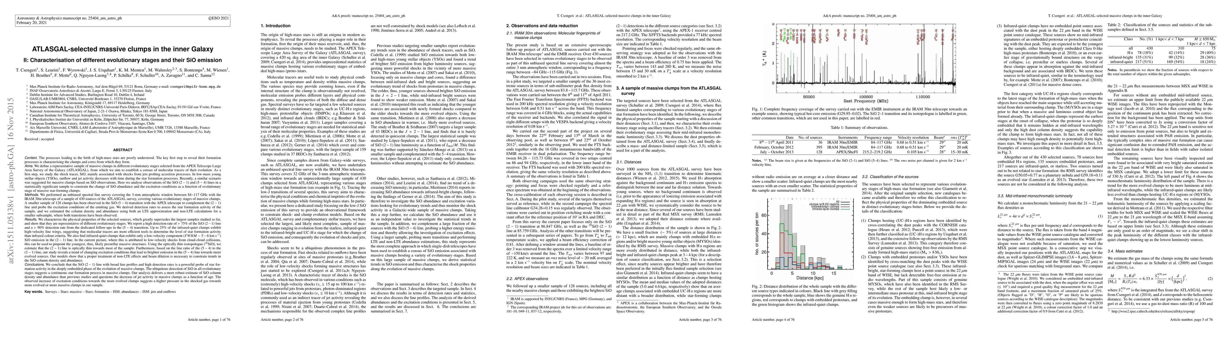 This work distinguishes itself by combining high-resolution data from ATLASGAL and IRAM 30m, along with APEX observations in the SiO (5-4) transition, to probe excitation conditions and evolutionary stages in massive clumps.