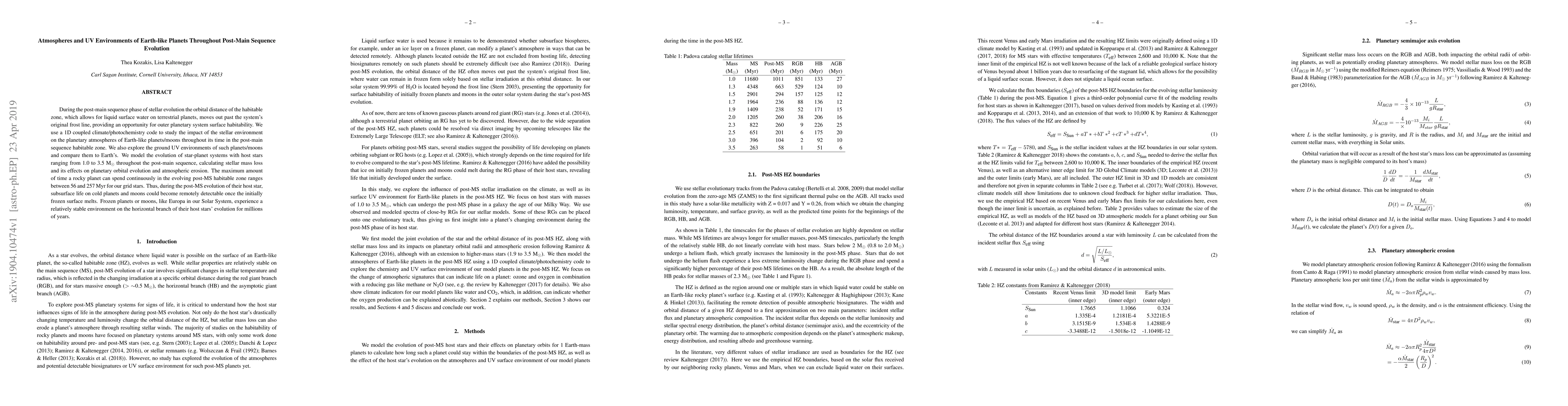 This research investigates how Earth-like planets' atmospheres and UV environments change during their host stars' post-main sequence evolution, finding that the habitable zone shifts outward, potentially allowing outer planetary systems to support surface life. The study also explores the implications for subsurface life detection on frozen planets and moons.