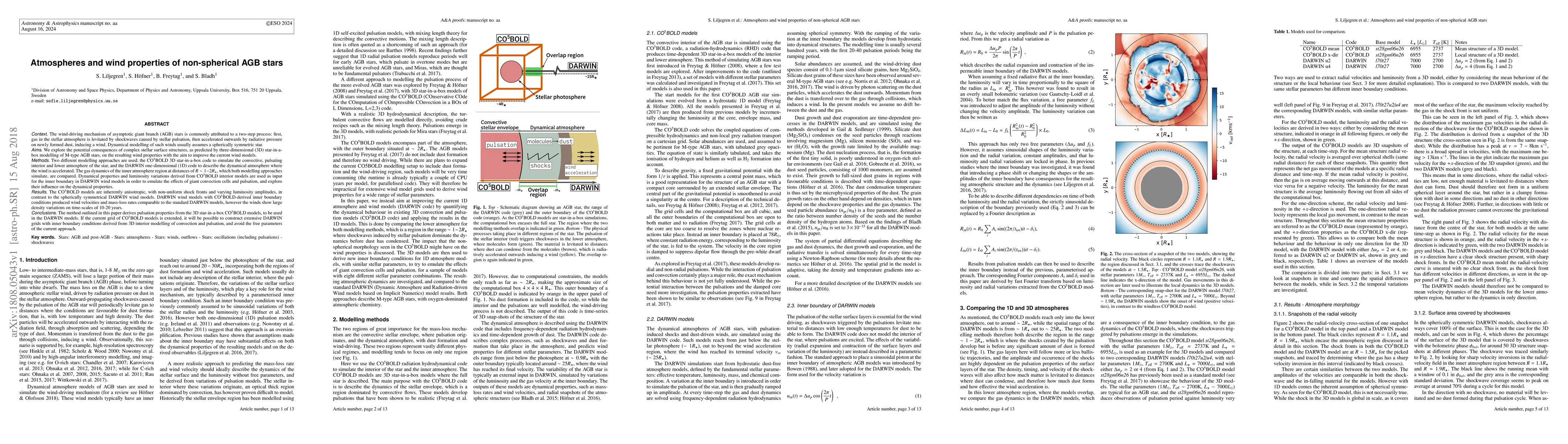 A study used 3D star modeling to simulate winds from non-spherical AGB stars, finding that these models produce wind velocities and mass-loss rates similar to spherical models but with large density variations over time.