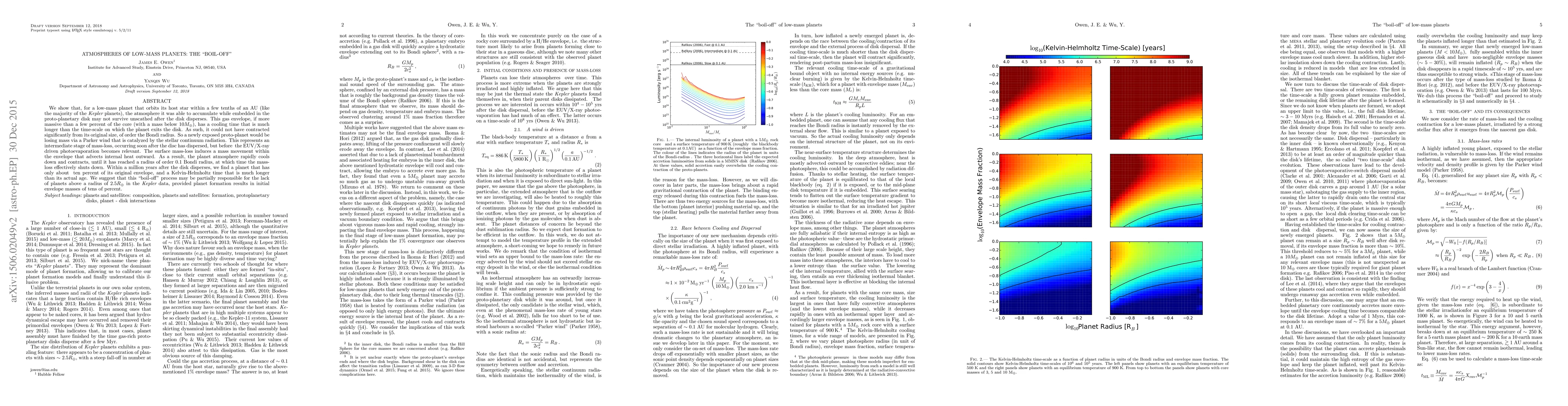 This paper explores the "boil-off" process in low-mass planets, where their atmospheres, accumulated during formation, rapidly lose mass via a Parker wind driven by stellar radiation soon after the proto-planetary disk disperses. This intermediate stage of mass-loss leads to rapid cooling and contraction of the atmosphere, significantly reducing its size within a million years.