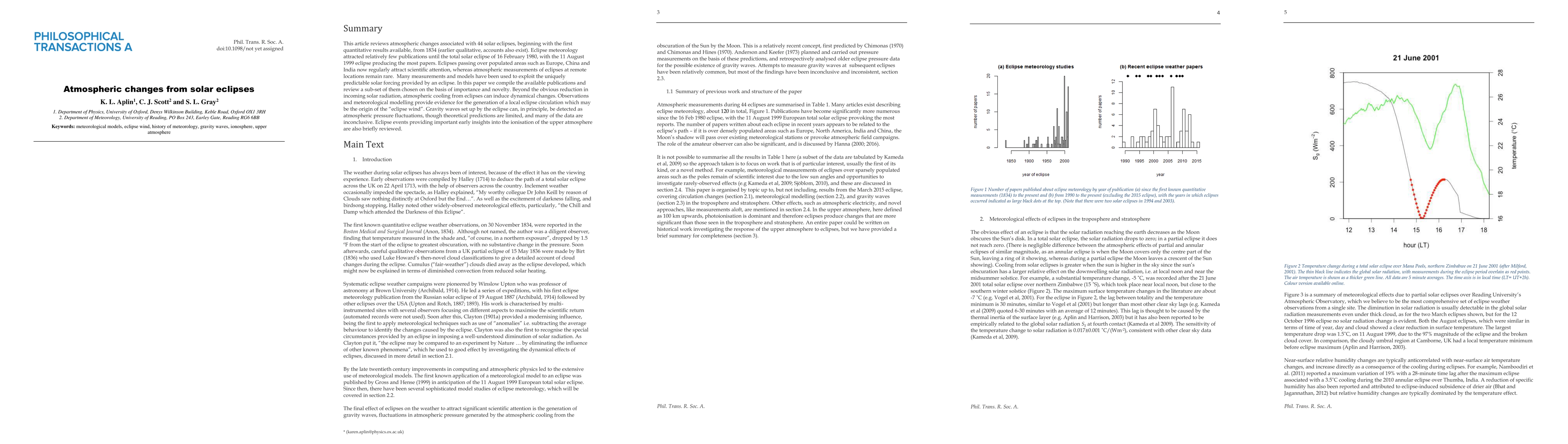 Atmospheric changes during solar eclipses can induce cooling and dynamical changes, including a local eclipse circulation known as the 'eclipse wind', according to research that reviewed 44 solar eclipses.