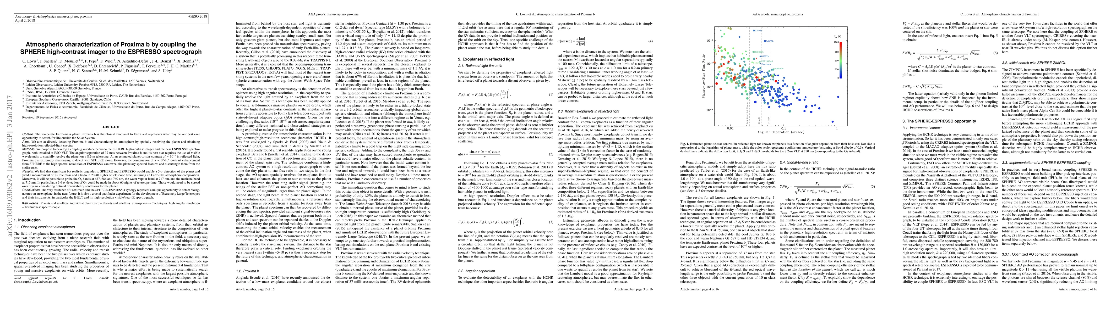 This research proposes a method to directly detect and characterize the atmosphere of Proxima b using the SPHERE high-contrast imager coupled with the ESPRESSO spectrograph on the VLT. The study suggests that with significant upgrades, it is feasible to detect the planet and measure its mass and albedo, potentially revealing biosignatures like O2, water vapor, and methane in its atmosphere.