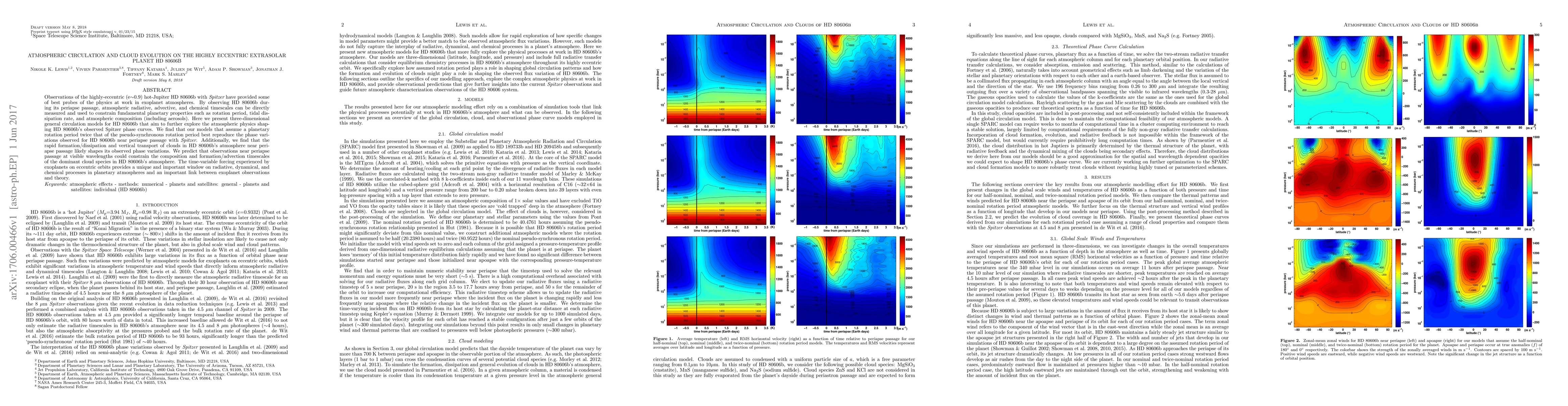 A three-dimensional general circulation model of HD80606b was used to simulate its atmospheric properties.