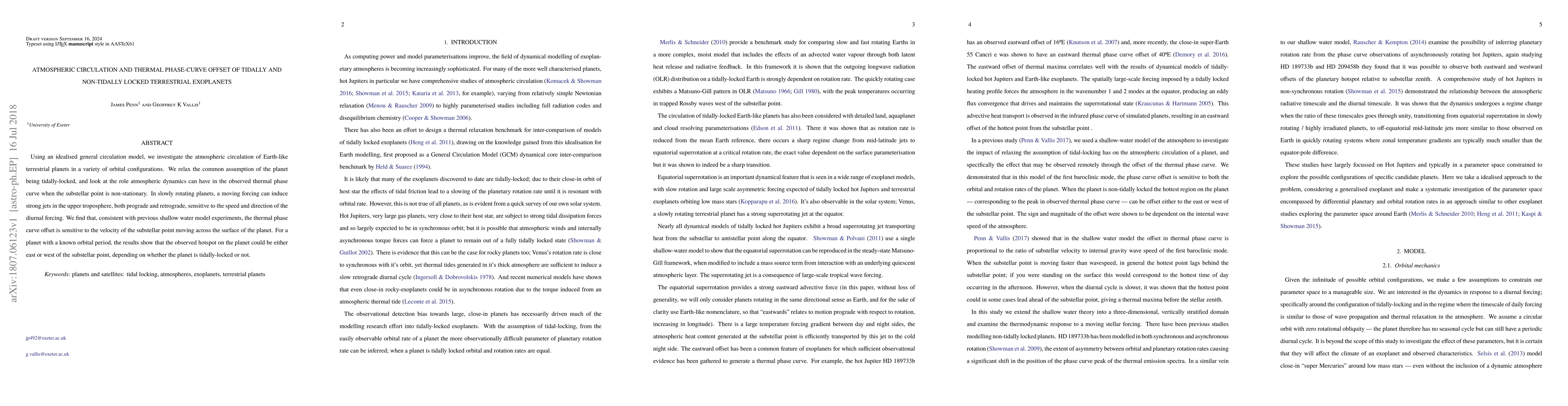This study uses a general circulation model to explore atmospheric dynamics on Earth-like planets with varying orbital configurations, finding that atmospheric circulation significantly influences thermal phase curve offsets. The research reveals that the position of the planet's hotspot can shift east or west of the substellar point depending on tidal locking, driven by the speed and direction of the diurnal forcing.