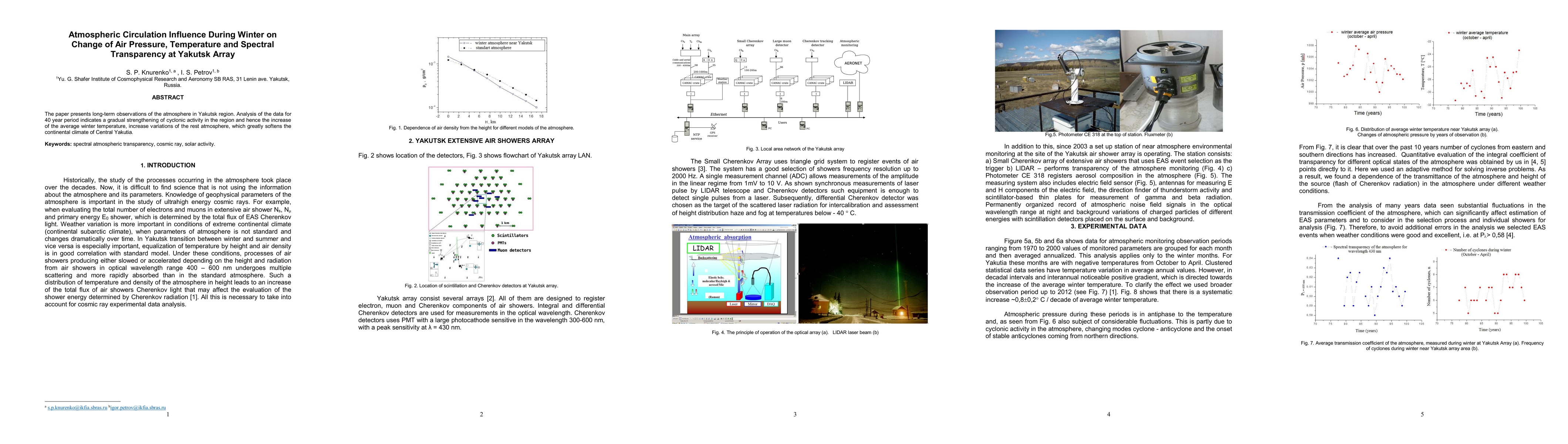 The paper presents long-term observations of the atmosphere in Yakutsk region. Analysis of the data for 40 year period indicates a gradual strengthening of cyclonic activity in the region and hence the increase of the average winter temperature, increase variations of the rest atmosphere, which greatly softens the continental climate of Central Yakutia.