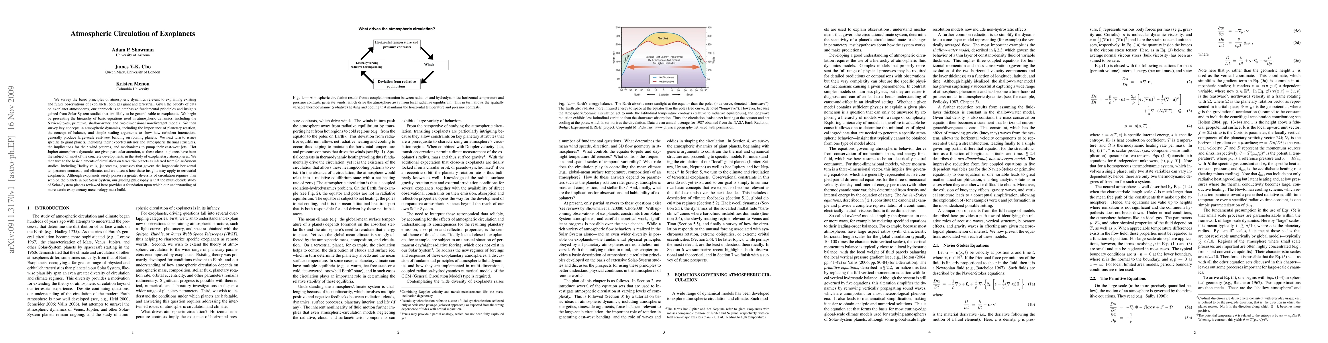 This paper surveys fundamental principles of atmospheric dynamics applicable to exoplanets, emphasizing insights from Solar-System studies. It covers basic equations, concepts like planetary rotation and balance, and discusses circulation patterns on both gas giants and terrestrial planets, with a focus on hot Jupiters.