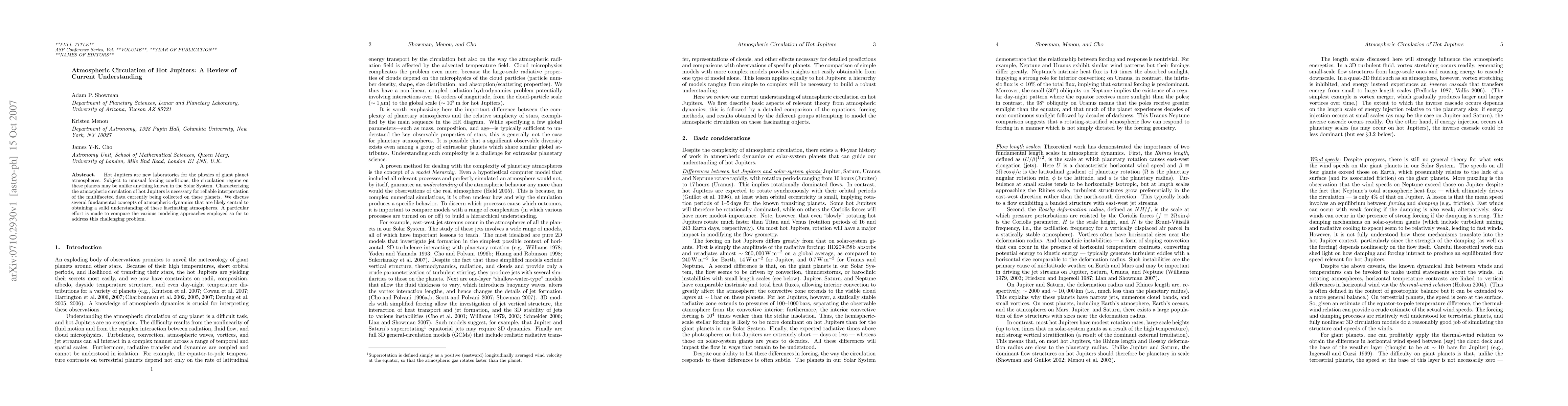 This paper reviews the current understanding of atmospheric circulation in hot Jupiters, emphasizing the unique dynamics of their atmospheres and the importance of characterizing these circulations for interpreting observational data. It compares various modeling techniques used to study these complex planetary atmospheres.