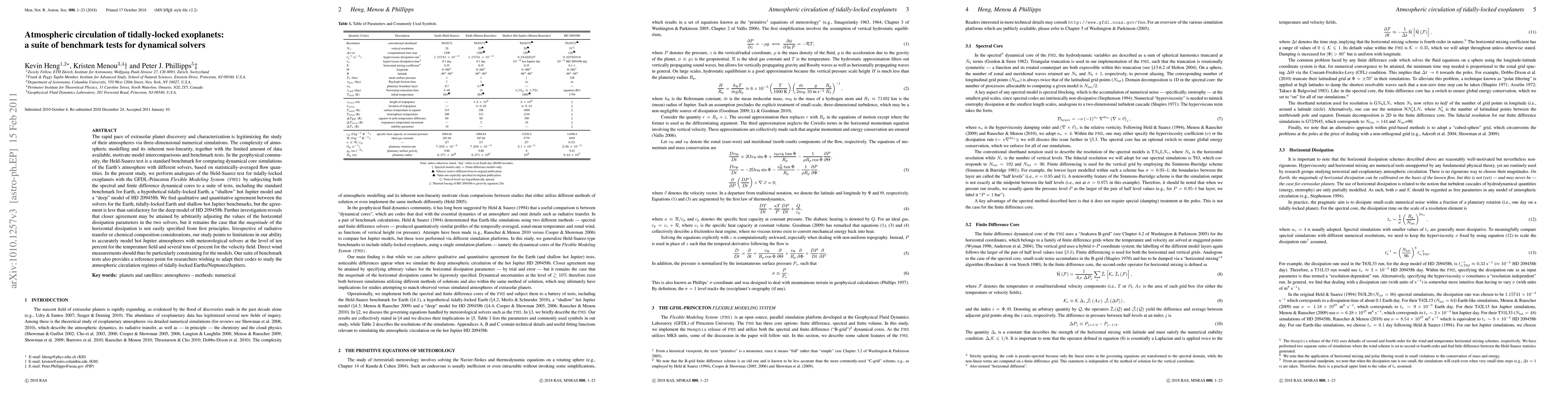 The complexity of atmospheric modelling and its inherent non-linearity, together with the limited amount of data of exoplanets available, motivate model intercomparisons and benchmark tests. In the geophysical community, the Held-Suarez test is a standard benchmark for comparing dynamical core simulations of the Earth's atmosphere with different solvers, based on statistically-averaged flow quantities. In the present study, we perform analogues of the Held-Suarez test for tidally-locked exoplanets with the GFDL-Princeton Flexible Modeling System (FMS) by subjecting both the spectral and finite difference dynamical cores to a suite of tests, including the standard benchmark for Earth, a hypothetical tidally-locked Earth, a "shallow" hot Jupiter model and a "deep" model of HD 209458b. We find qualitative and quantitative agreement between the solvers for the Earth, tidally-locked Earth and shallow hot Jupiter benchmarks, but the agreement is less than satisfactory for the deep model of HD 209458b. Further investigation reveals that closer agreement may be attained by arbitrarily adjusting the values of the horizontal dissipation parameters in the two solvers, but it remains the case that the magnitude of the horizontal dissipation is not easily specified from first principles. Irrespective of radiative transfer or chemical composition considerations, our study points to limitations in our ability to accurately model hot Jupiter atmospheres with meteorological solvers at the level of ten percent for the temperature field and several tens of percent for the velocity field. Direct wind measurements should thus be particularly constraining for the models. Our suite of benchmark tests also provides a reference point for researchers wishing to adapt their codes to study the atmospheric circulation regimes of tidally-locked Earths/Neptunes/Jupiters.