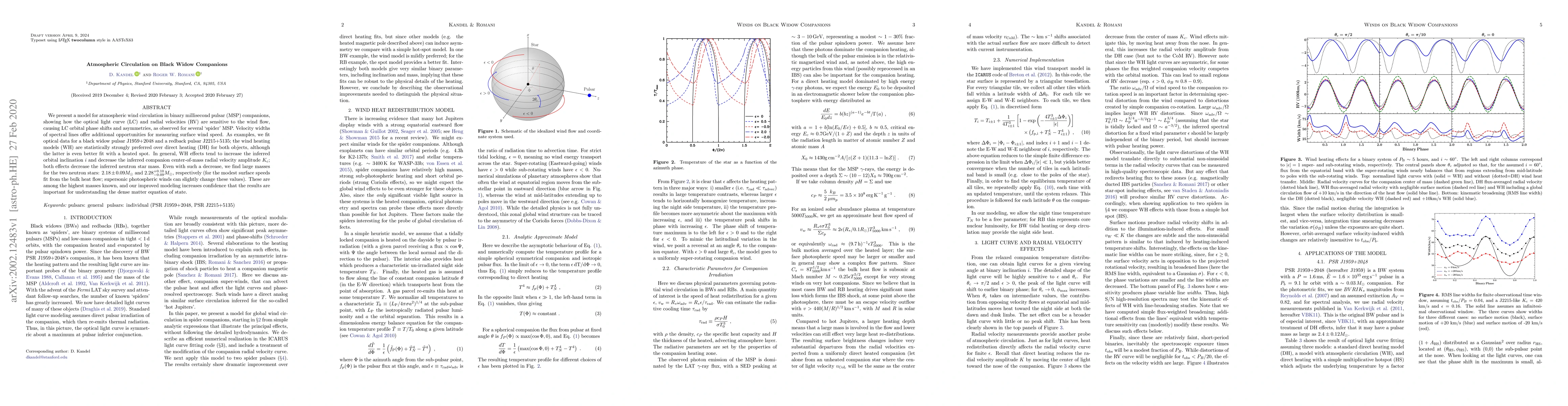 The paper introduces a model for wind circulation in binary millisecond pulsar companions, demonstrating its impact on optical light curves and radial velocities. By analyzing data from black widow pulsar J1959+2048 and redback pulsar J2215+5135, the study finds that wind heating models are statistically preferred over direct heating models. This leads to increased inferred orbital inclination, decreased radial velocity amplitude, and reduced neutron star mass estimates. Despite these adjustments, the neutron star masses are found to be among the highest known, at 2.18±0.09M☉ and 2.28+0.10−0.09M☉, respectively, suggesting important insights into the dense matter equation of state.