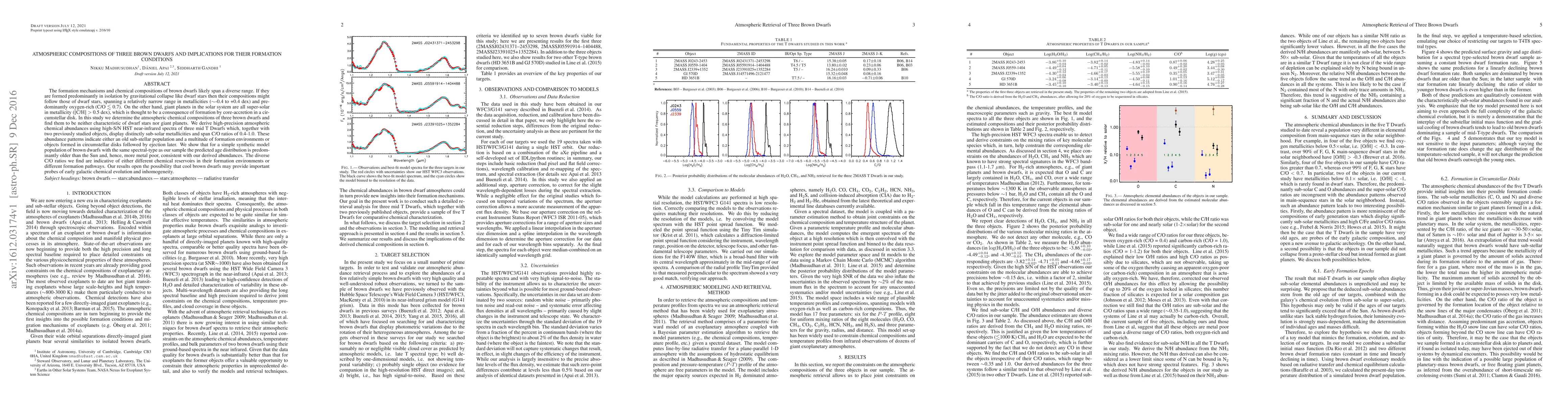 The formation mechanisms and chemical compositions of brown dwarfs likely span a diverse range. If they are formed predominantly in isolation by gravitational collapse like dwarf stars then their compositions might follow those of dwarf stars, spanning a relatively narrow range in metallicities (~ -0.4 to +0.4 dex) and predominantly oxygen-rich (C/O <~ 0.7). On the other hand, giant planets in the solar system are all super-solar in metallicity ([C/H] > 0.5~dex), which is thought to be a consequence of formation by core-accretion in a circumstellar disk. In this study we determine the atmospheric chemical compositions of three brown dwarfs and find them to be neither characteristic of dwarf stars nor giant planets. We derive high-precision atmospheric chemical abundances using high-S/N HST near-infrared spectra of three mid T Dwarfs which, together with two previously studied objects, display distinctly sub-solar metallicities and span C/O ratios of 0.4-1.0. These abundance patterns indicate either an old sub-stellar population and a multitude of formation environments or objects formed in circumstellar disks followed by ejection later. We show that for a simple synthetic model population of brown dwarfs with the same spectral-type as our sample the predicted age distribution is predominantly older than the Sun and, hence, more metal poor, consistent with our derived abundances. The diverse C/O ratios we find are indicative of either different chemical reservoirs in their formation environments or different formation pathways. Our results open the possibility that cool brown dwarfs may provide important probes of early galactic chemical evolution and inhomogeneity.