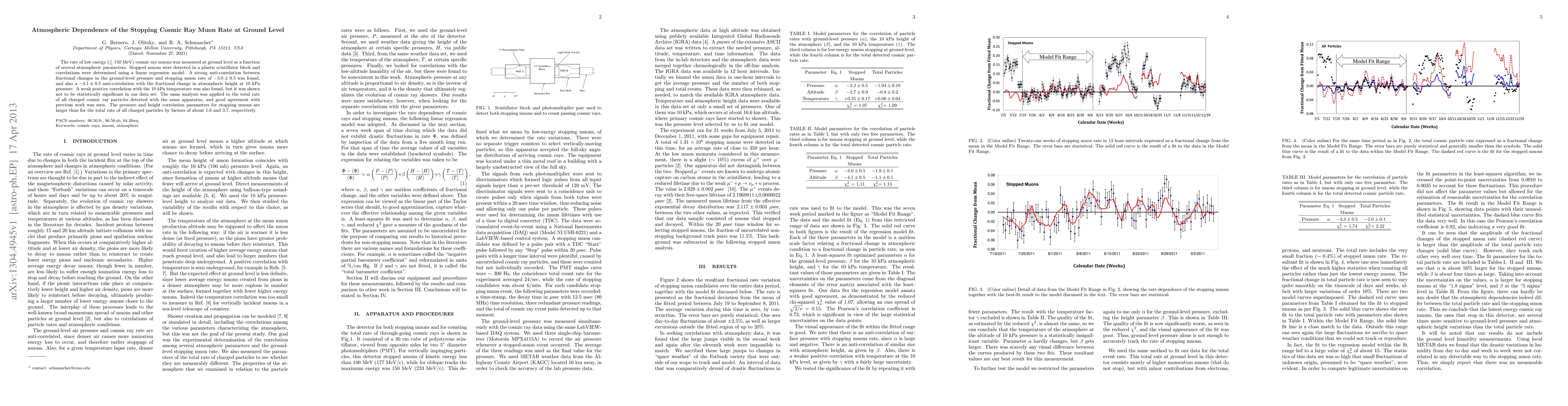 Researchers measured the rate of low-energy cosmic ray muons at ground level in relation to atmospheric pressure and height, finding a strong anti-correlation with pressure changes and a significant correlation with altitude changes.