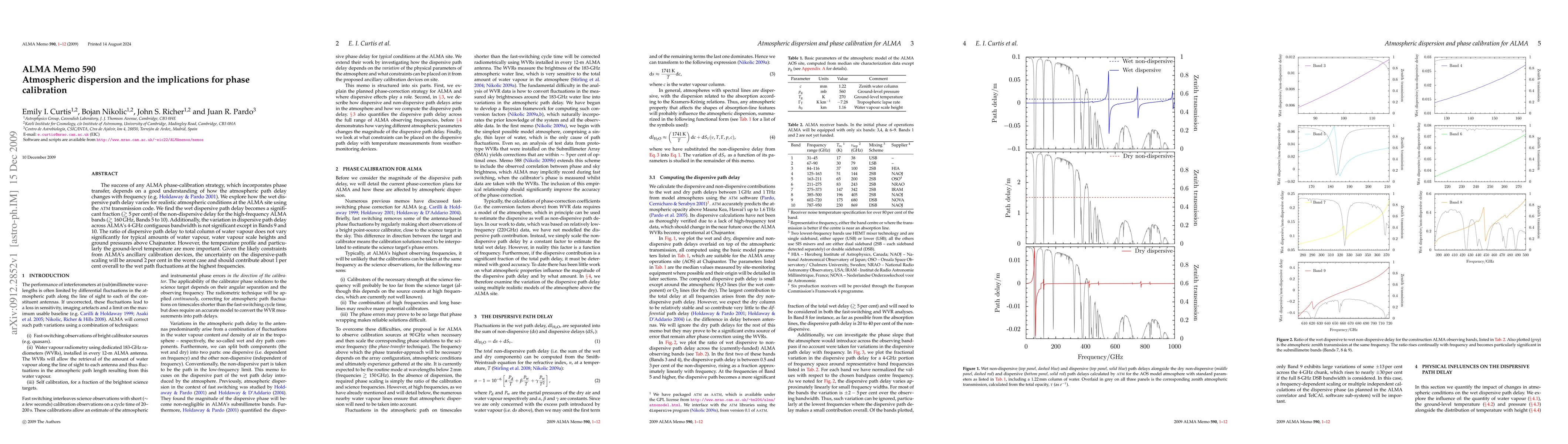 This research investigates atmospheric dispersion effects on phase calibration at the ALMA site. Using the ATM transmission code, it finds that for higher ALMA bands (>160 GHz), the wet dispersive path delay significantly impacts the non-dispersive delay (>5%). Despite variations in water vapor conditions, ground-level temperature plays a crucial role. The uncertainty in dispersive-path scaling is estimated to contribute about 1% to wet path fluctuations at the highest frequencies.