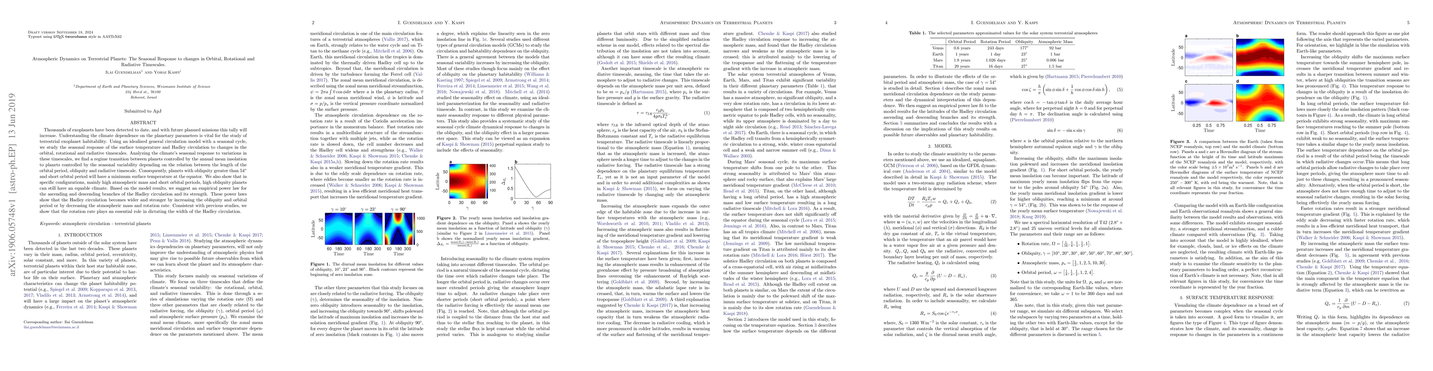 Thousands of exoplanets have been detected to date, and with future planned missions this tally will increase. Understanding the climate dependence on the planetary parameters is vital for the study of terrestrial exoplanet habitability. Using an idealized general circulation model with a seasonal cycle, we study the seasonal response of the surface temperature and Hadley circulation to changes in the orbital, rotational and radiative timescales. Analyzing the climate's seasonal response to variations in these timescales, we find a regime transition between planets controlled by the annual mean insolation to planets controlled by the seasonal variability depending on the relation between the length of the orbital period, obliquity and radiative timescale. Consequently, planets with obliquity greater than $54^{\circ}$ and short orbital period will have a minimum surface temperature at the equator. We also show that in specific configurations, mainly high atmospheric mass and short orbital periods, high obliquity planets can still have an equable climate. Based on the model results, we suggest an empirical power law for the ascending and descending branches of the Hadley circulation and its strength. These power laws show that the Hadley circulation becomes wider and stronger by increasing the obliquity and orbital period or by decreasing the atmospheric mass and rotation rate. Consistent with previous studies, we show that the rotation rate plays an essential role in dictating the width of the Hadley circulation.