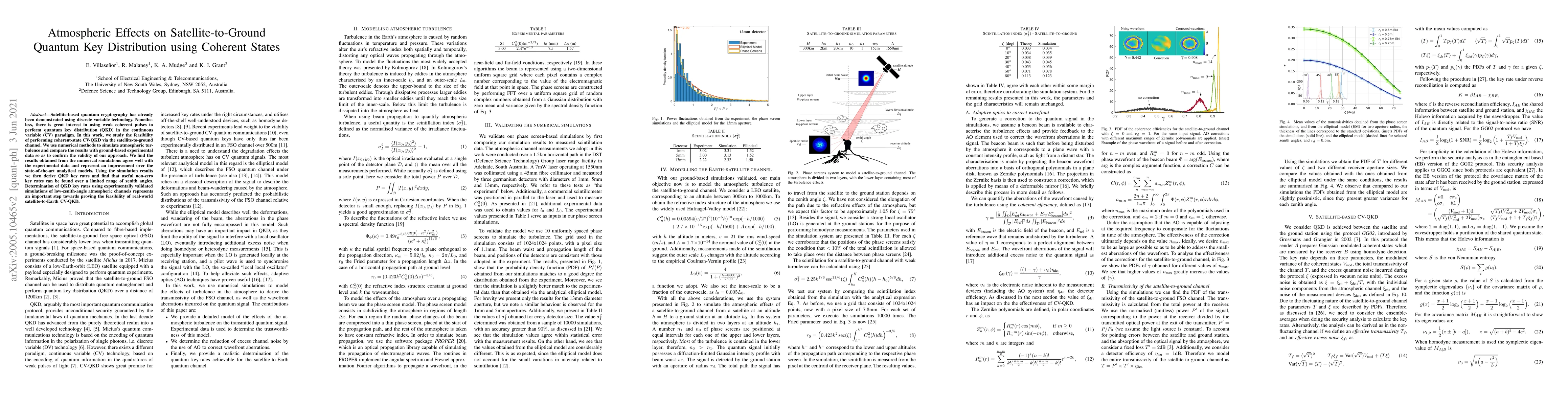This paper investigates the feasibility of satellite-to-ground continuous variable quantum key distribution using coherent states, finding that simulations of atmospheric turbulence match experimental data and enable the determination of non-zero key rates over limited zenith angles, thus advancing the potential for practical satellite-based quantum communication.