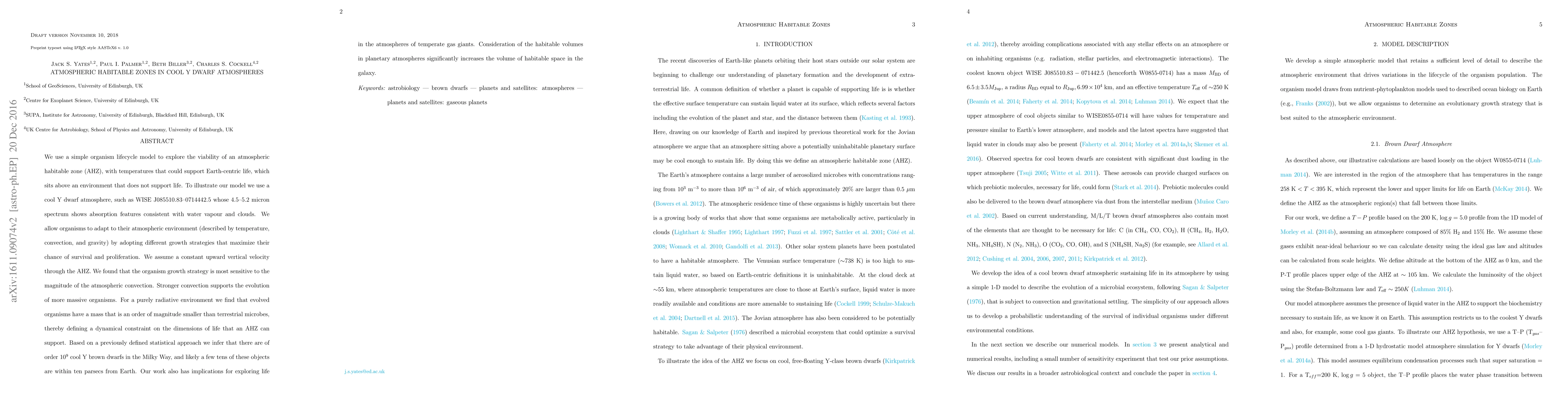 We use a simple organism lifecycle model to explore the viability of an atmospheric habitable zone (AHZ), with temperatures that could support Earth-centric life, which sits above an environment that does not support life. To illustrate our model we use a cool Y dwarf atmosphere, such as $\mathrm{WISE~J}085510.83-0714442.5$ whose $4.5-5.2$ micron spectrum shows absorption features consistent with water vapour and clouds. We allow organisms to adapt to their atmospheric environment (described by temperature, convection, and gravity) by adopting different growth strategies that maximize their chance of survival and proliferation. We assume a constant upward vertical velocity through the AHZ. We found that the organism growth strategy is most sensitive to the magnitude of the atmospheric convection. Stronger convection supports the evolution of more massive organisms. For a purely radiative environment we find that evolved organisms have a mass that is an order of magnitude smaller than terrestrial microbes, thereby defining a dynamical constraint on the dimensions of life that an AHZ can support. Based on a previously defined statistical approach we infer that there are of order $10^9$ cool Y brown dwarfs in the Milky Way, and likely a few tens of these objects are within ten parsecs from Earth. Our work also has implications for exploring life in the atmospheres of temperate gas giants. Consideration of the habitable volumes in planetary atmospheres significantly increases the volume of habitable space in the galaxy.