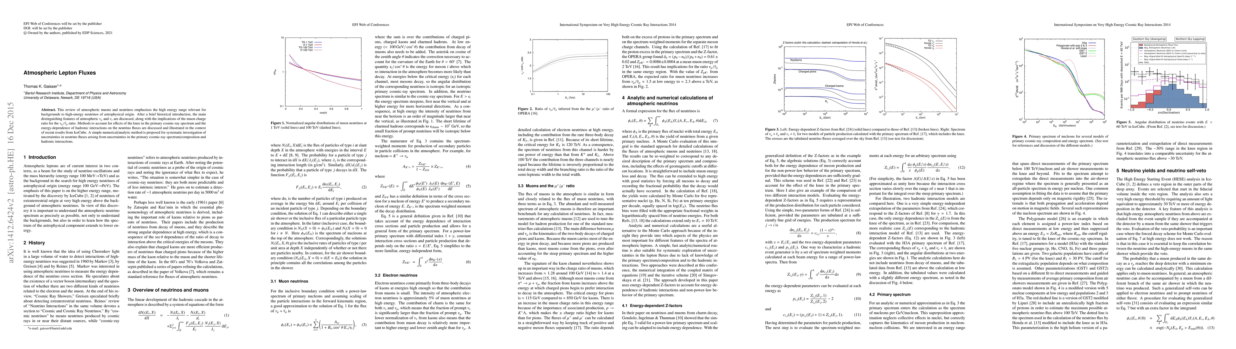 This paper reviews atmospheric muons and neutrinos, focusing on high-energy ranges relevant for astrophysical neutrino backgrounds. It discusses the implications of the muon charge ratio and proposes a method to investigate uncertainties in neutrino fluxes due to cosmic-ray spectrum and hadronic interaction variations.