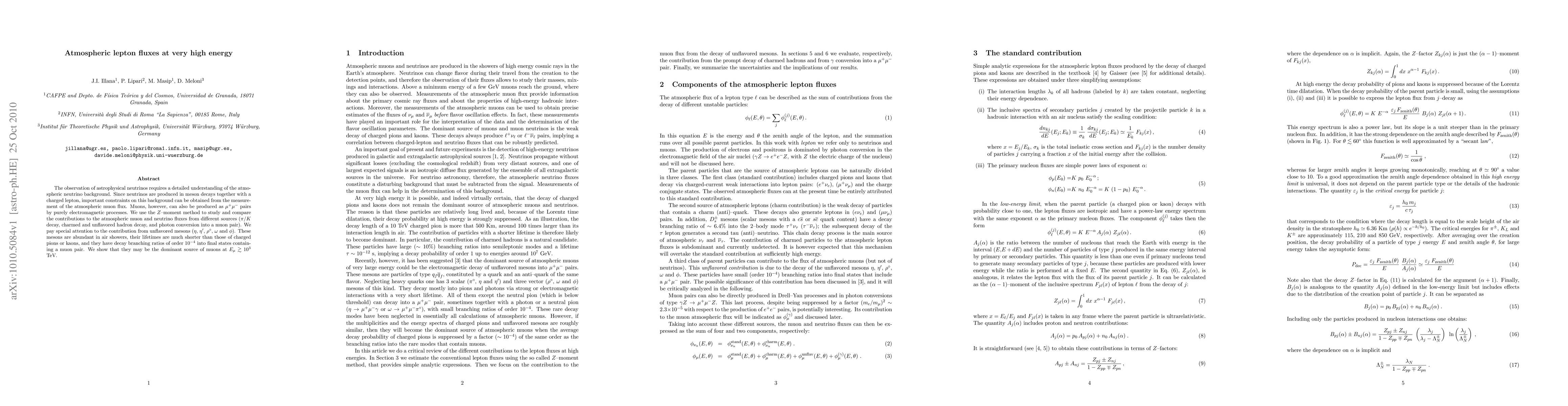 This paper investigates atmospheric muon and neutrino fluxes at very high energies, focusing on contributions from various sources including unflavored mesons. The study reveals that unflavored mesons may dominate the muon flux at energies above 10^3 TeV.