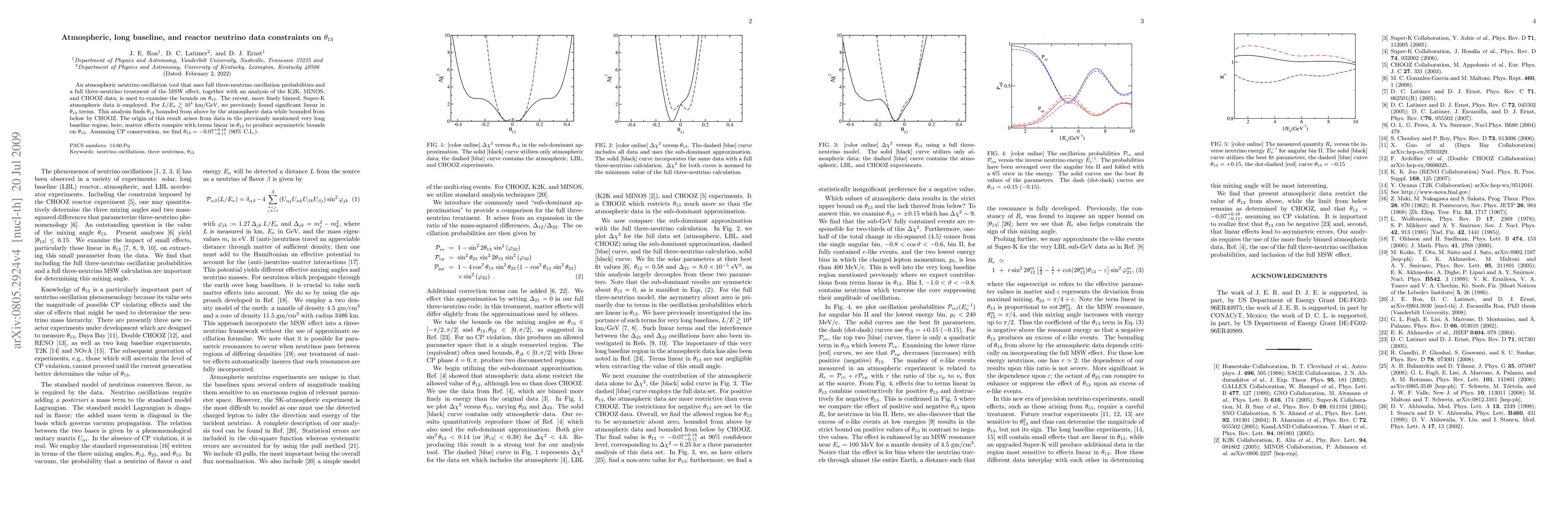 A new atmospheric neutrino oscillation tool which utilizes full three neutrino oscillation probabilities and a full three neutrino treatment of the MSW effect is combined with a standard analysis of the K2K, MINOS, and CHOOZ data to examine the bounds on $\theta_{13}$ implied by existing data, including the recent, more finely binned, Super-K atmospheric data. In the region $L/E_\nu\gtrsim 10^4$ km/GeV, we have previously found that the sub-dominant expansion does not converge and that terms linear in $\theta_{13}$ can be significant. The current analysis confirms this and leads to the conclusion that $\theta_{13}$ is bounded from above by the atmospheric data while CHOOZ provides the lower bound. We trace the origin of this result to fully contained data in the previously mentioned very long baseline region, to a combination of a quadratic in $\theta_{13}$ term in ${\mathcal P}_{ee}$ and a linear term in ${\mathcal P}_{e\mu}$ and their contribution to $R_e$, a broad MSW resonance for the solar mass-squared difference at 180 MeV, and an increase in $\theta_{12}$ due to this resonant matter effect which alters the sign of the linear in $\theta_{13}$ term. Assuming CP is conserved in the lepton sector, we find $\theta_{13}=-0.07^{+0.18}_{-0.11}$, the asymmetry being a reflection of the importance of the linear in $\theta_{13}$ terms.