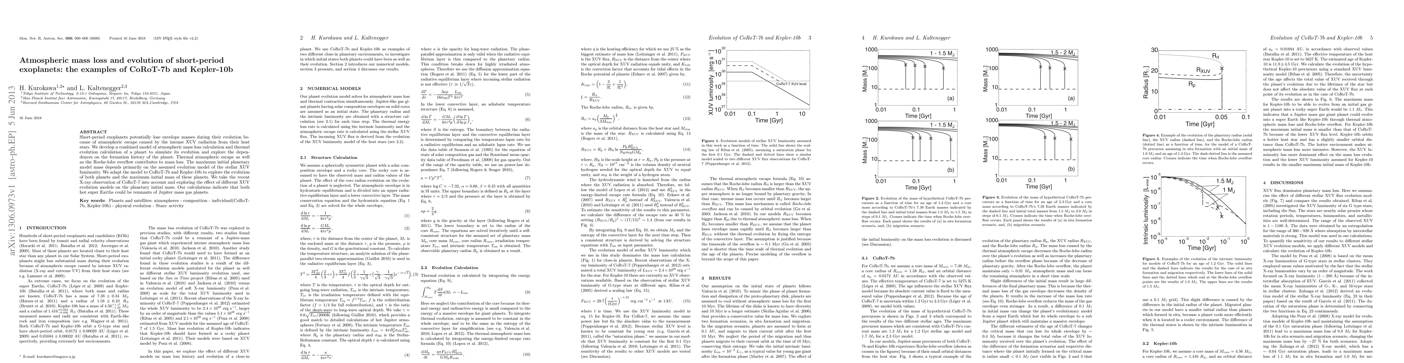 Short-period exoplanets potentially lose envelope masses during their evolution because of atmospheric escape caused by the intense XUV radiation from their host stars. We develop a combined model of atmospheric mass loss calculation and thermal evolution calculation of a planet to simulate its evolution and explore the dependences on the formation history of the planet. Thermal atmospheric escape as well as the Roche-lobe overflow contributes to mass loss. The maximum initial planetary model mass depends primarily on the assumed evolution model of the stellar XUV luminosity. We adapt the model to CoRoT-7b and Kepler-10b to explore the evolution of both planets and the maximum initial mass of these planets. We take the recent X-ray observation of CoRoT-7 into account and exploring the effect of different XUV evolution models on the planetary initial mass. Our calculations indicate that both hot super Earths could be remnants of Jupiter mass gas planets.