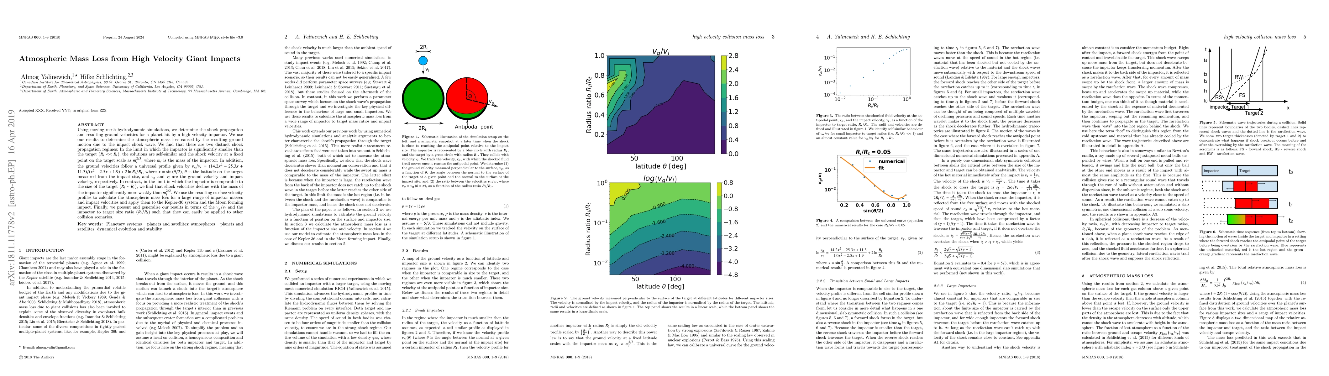 A study finds that high-velocity giant impacts can cause significant atmospheric mass loss due to shock wave propagation, with the amount of mass lost varying depending on the impactor's size relative to the target planet.