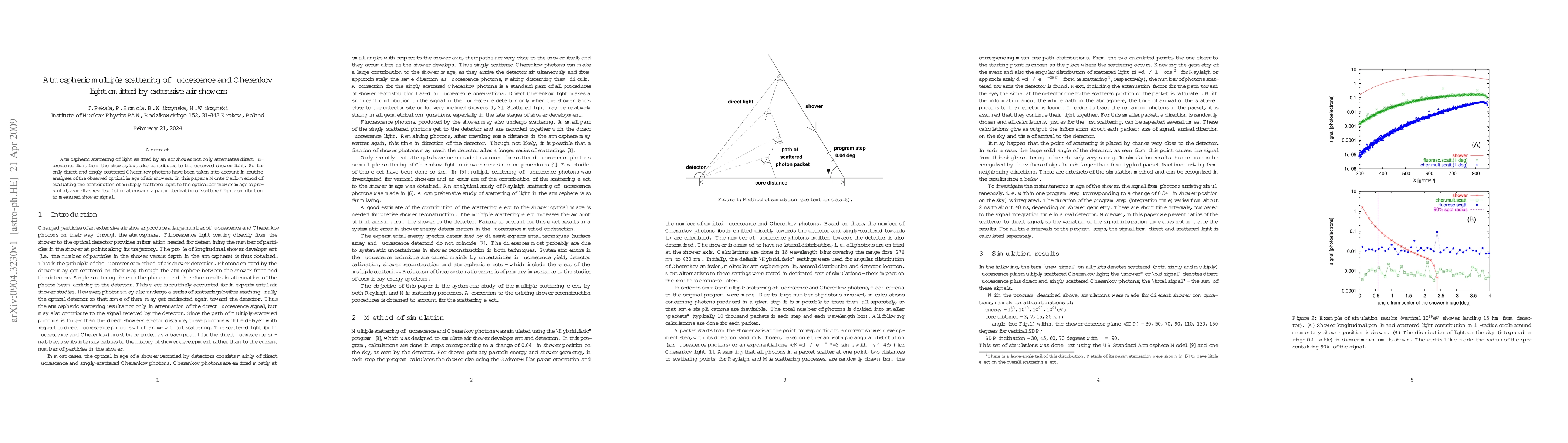 The development of a Monte Carlo method for simulating multiple scattering of light in extensive air showers and deriving parameterizations for its contribution to the observed shower signal.