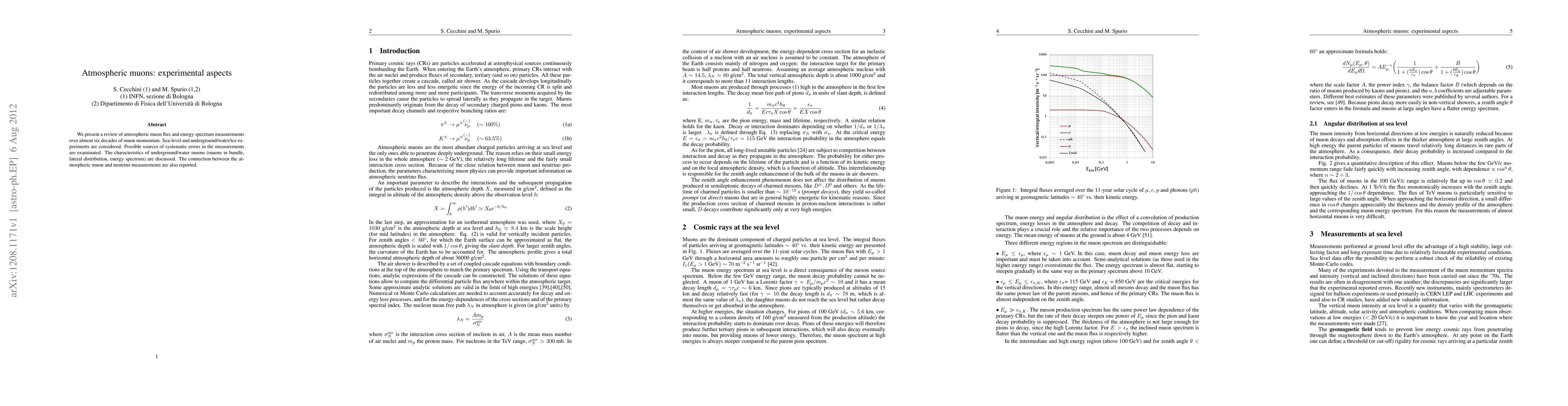 This paper reviews atmospheric muon flux and energy spectrum measurements across various experimental setups, highlighting potential systematic errors and characteristics of underground/water muons. It also discusses the relationship between atmospheric muon and neutrino measurements.