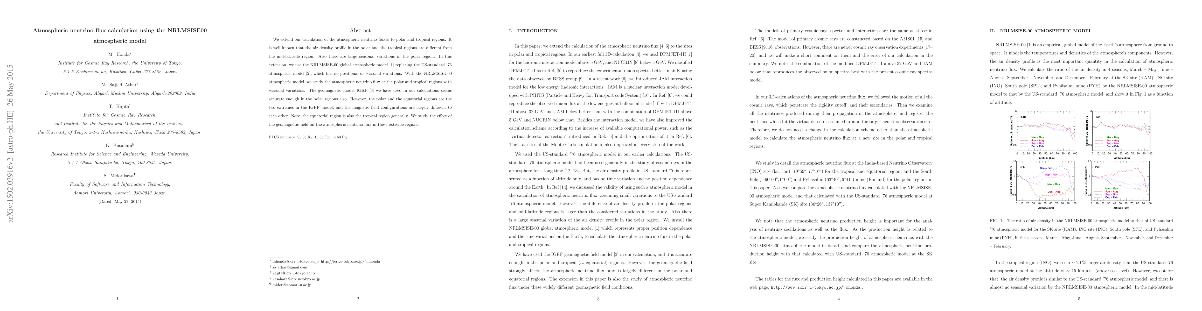 This paper extends atmospheric neutrino flux calculations to polar and tropical regions using improved interaction models and computational methods, with the goal of better reproducing experimental muon spectra and advancing our understanding of atmospheric neutrinos.