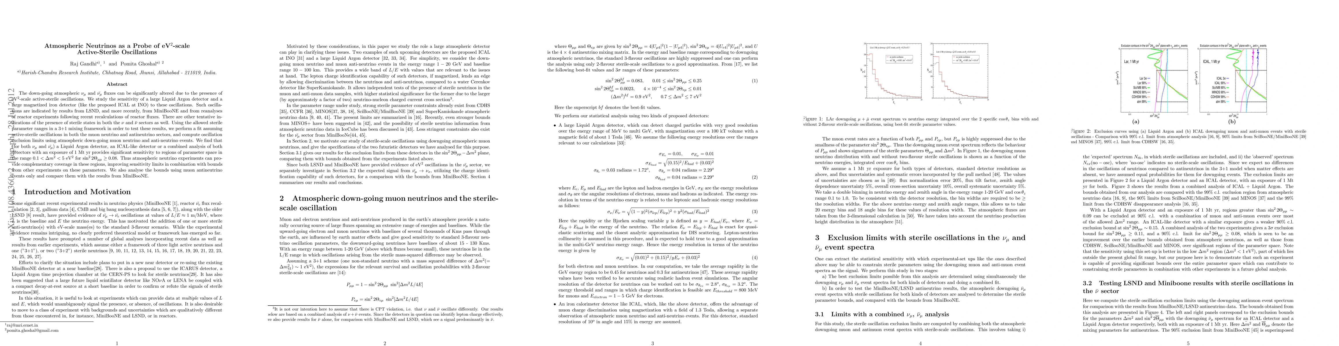 The down-going atmospheric \nu_{\mu} and {\bar{\nu_{\mu}}} fluxes can be significantly altered due to the presence of eV^2-scale active-sterile oscillations. We study the sensitivity of a large Liquid Argon detector and a large magnetized iron detector (like the proposed ICAL at INO) to these oscillations. Such oscillations are indicated by results from LSND, and more recently, from MiniBooNE and from reanalyses of reactor experiments following recent recalculations of reactor fluxes. There are other tentative indications of the presence of sterile states in both the \nu and {\bar{\nu}} sectors as well. Using the allowed sterile parameter ranges in a 3+1 mixing framework in order to test these results, we perform a fit assuming active-sterile oscillations in both the muon neutrino and antineutrino sectors, and compute oscillation exclusion limits using atmospheric down-going muon neutrino and anti-neutrino events. We find that (for both \nu_{\mu} and {\bar{\nu_{\mu}}}) a Liquid Argon detector, an ICAL-like detector or a combined analysis of both detectors with an exposure of 1 Mt yr provides significant sensitivity to regions of parameter space in the range 0.1 < \Delta m^2 < 5 eV^2 for \sin^2 2\Theta_{\mu\mu}\geq 0.08. Thus atmospheric neutrino experiments can provide complementary coverage in these regions, improving sensitivity limits in combination with bounds from other experiments on these parameters. We also analyse the bounds using muon antineutrino events only and compare them with the results from MiniBooNE.