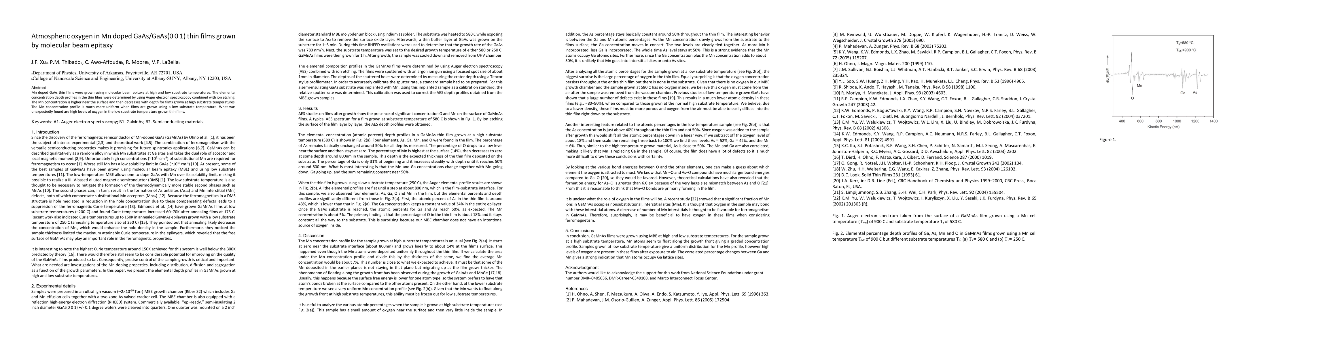 This study reveals Mn-doped GaAs thin films grown via molecular beam epitaxy exhibit varying Mn concentration profiles depending on substrate temperature. Notably, films grown at low temperatures show a more uniform Mn distribution but unexpectedly contain high levels of oxygen.