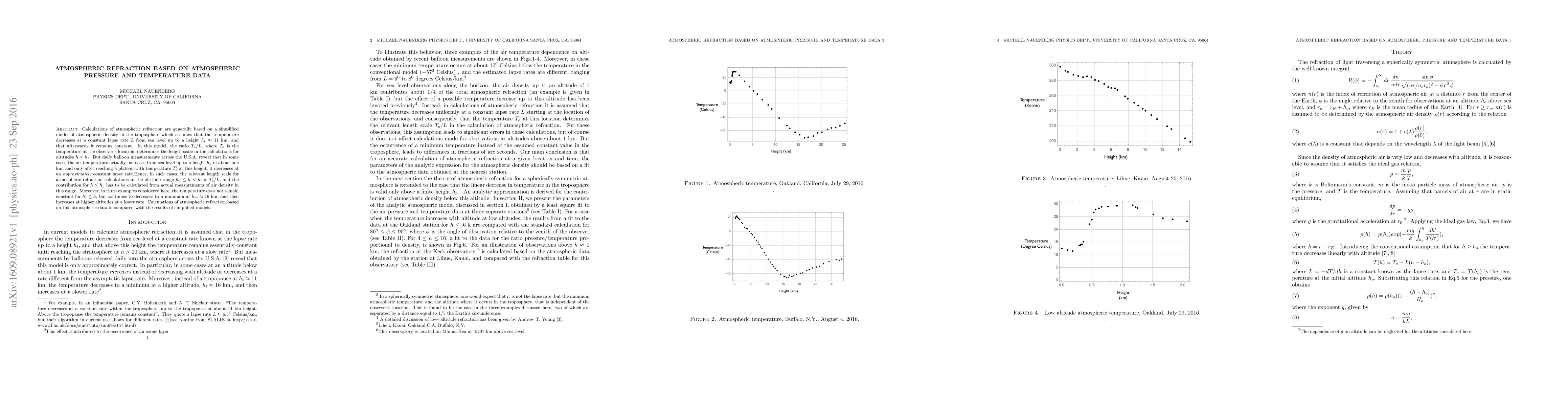 Researchers improved atmospheric refraction calculations by accounting for variations in temperature profiles, leading to more accurate predictions of refraction effects on atmospheric optics.