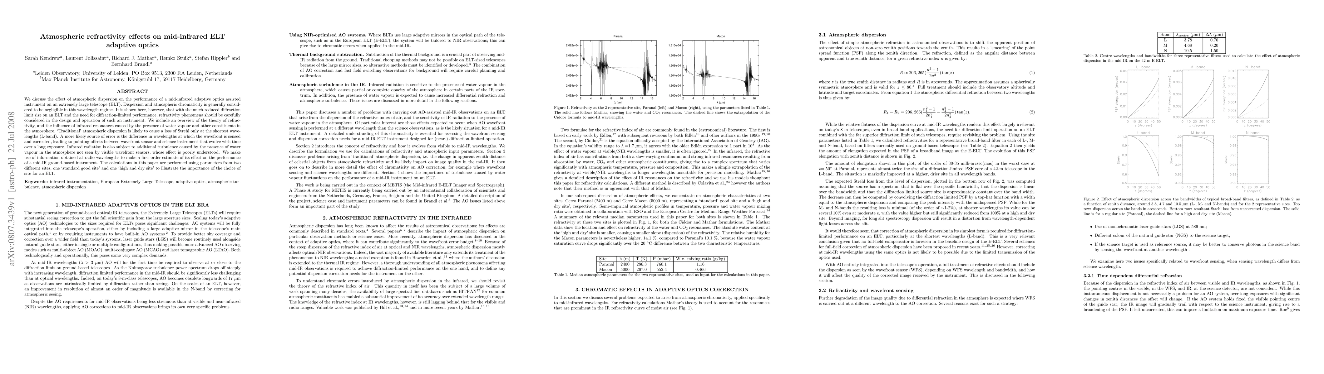 This paper examines the impact of atmospheric refractivity on mid-infrared adaptive optics for an extremely large telescope (ELT), revealing that atmospheric dispersion and chromaticity, though typically negligible, can cause significant wavefront errors due to differing wavelengths sensed and corrected. It also highlights the influence of water vapor and other atmospheric constituents on infrared wavefronts.