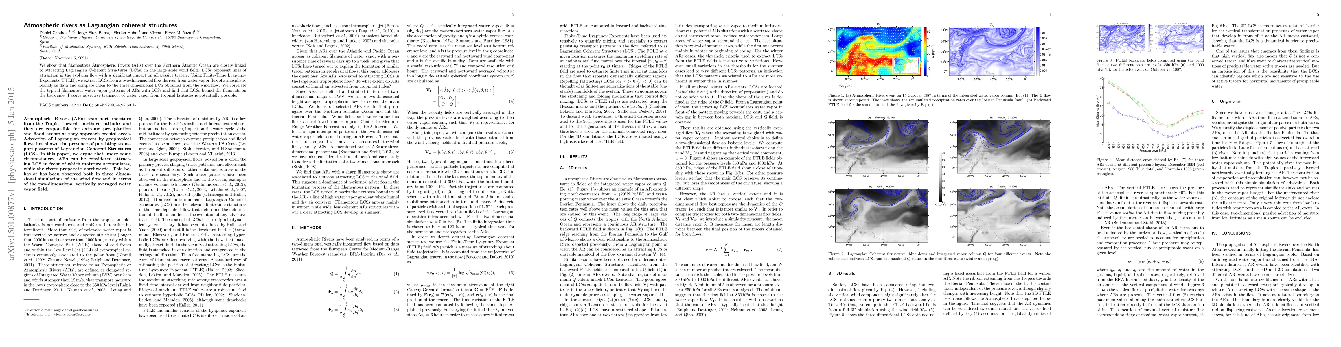 This paper demonstrates that Atmospheric Rivers (ARs) over the Northern Atlantic Ocean are closely associated with attracting Lagrangian Coherent Structures (LCSs) in the large-scale wind field, using Finite-Time Lyapunov Exponents (FTLE) to extract LCSs from atmospheric reanalysis data. The study finds that LCSs bound the filamentous water vapor patterns of ARs, indicating a significant impact on the advective transport of water vapor.
