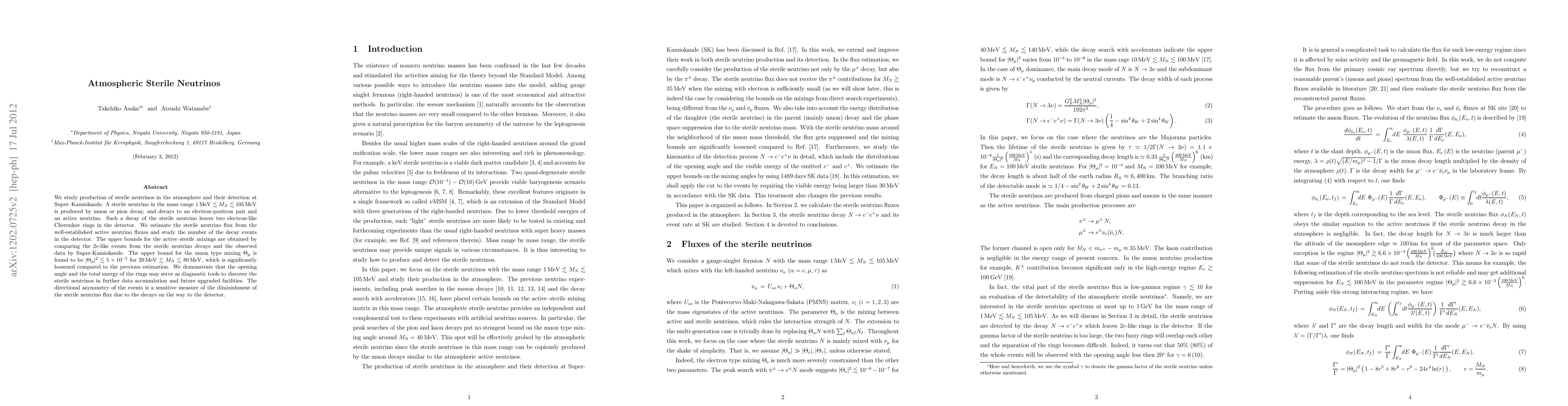 Researchers studied the production of sterile neutrinos in atmospheric muon and pion decay, detecting them at Super-Kamiokande, and found a significant loosening of upper bounds for active-sterile mixing, especially in lower mass ranges.