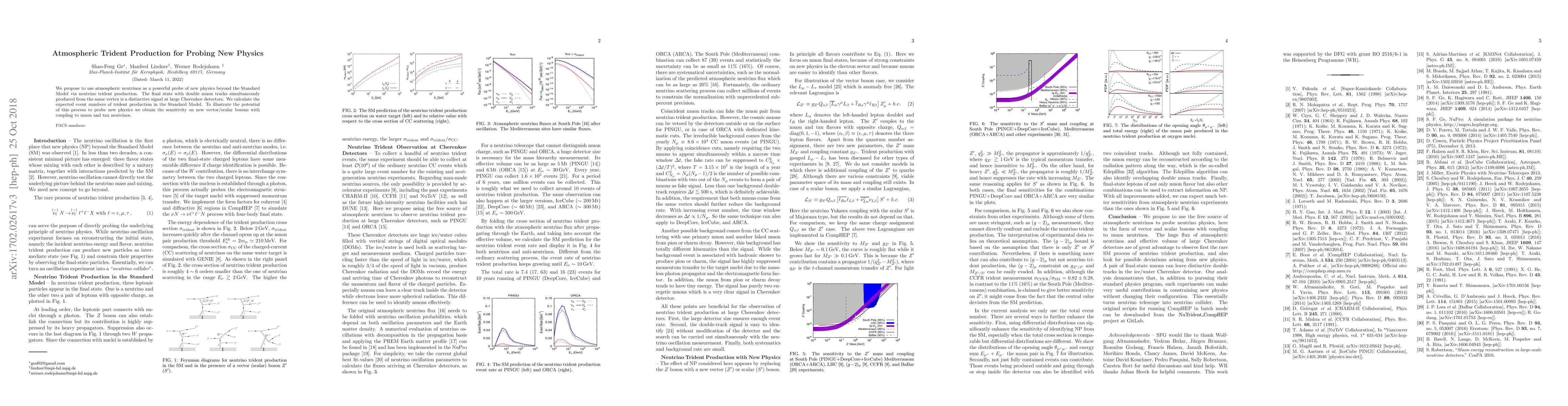 Researchers propose using atmospheric neutrinos to detect new physics beyond the Standard Model through trident production, a rare process that creates double muon tracks from the same vertex.