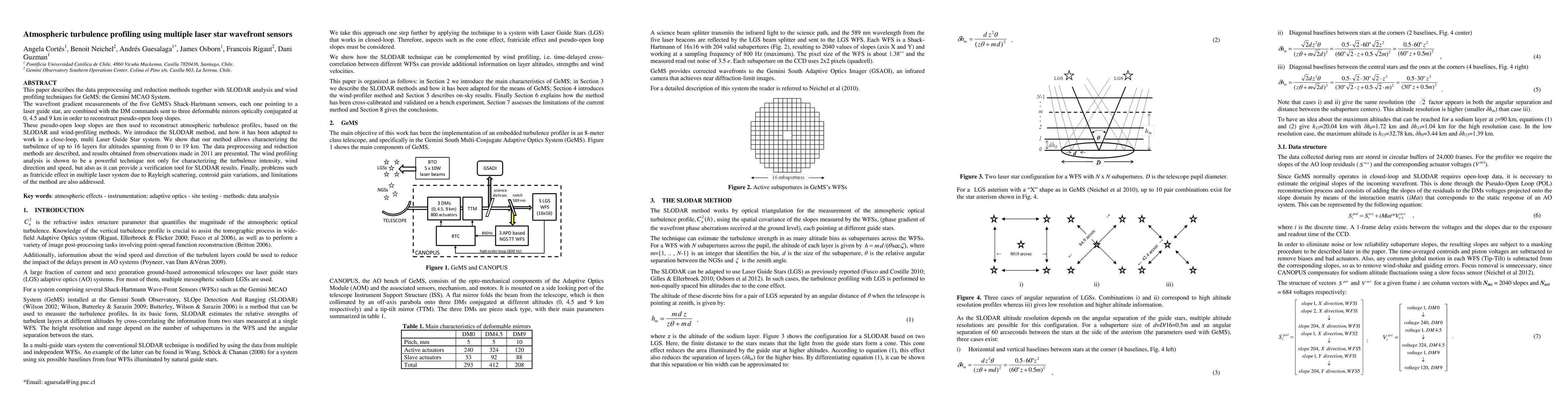 This paper details methods for atmospheric turbulence profiling using multiple laser star wavefront sensors in the GeMS system, combining Shack-Hartmann wavefront gradient measurements with deformable mirror commands to reconstruct turbulence profiles via SLODAR and wind profiling techniques. The results demonstrate effective characterization of up to 16 turbulence layers from 0 to 19 km.