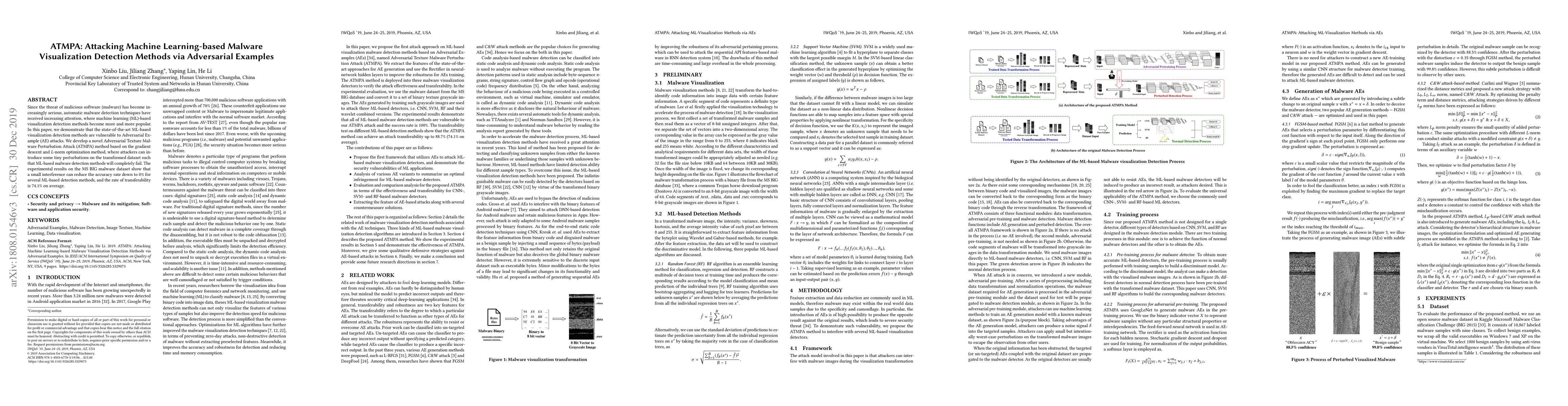 This paper reveals vulnerabilities in ML-based malware detection methods using adversarial examples. It introduces the novel Adversarial Texture Malware Perturbation Attack (ATMPA) method, which can reduce detection accuracy to 0% with minimal perturbations, demonstrating a 74.1% transferability rate on the MS BIG malware dataset.