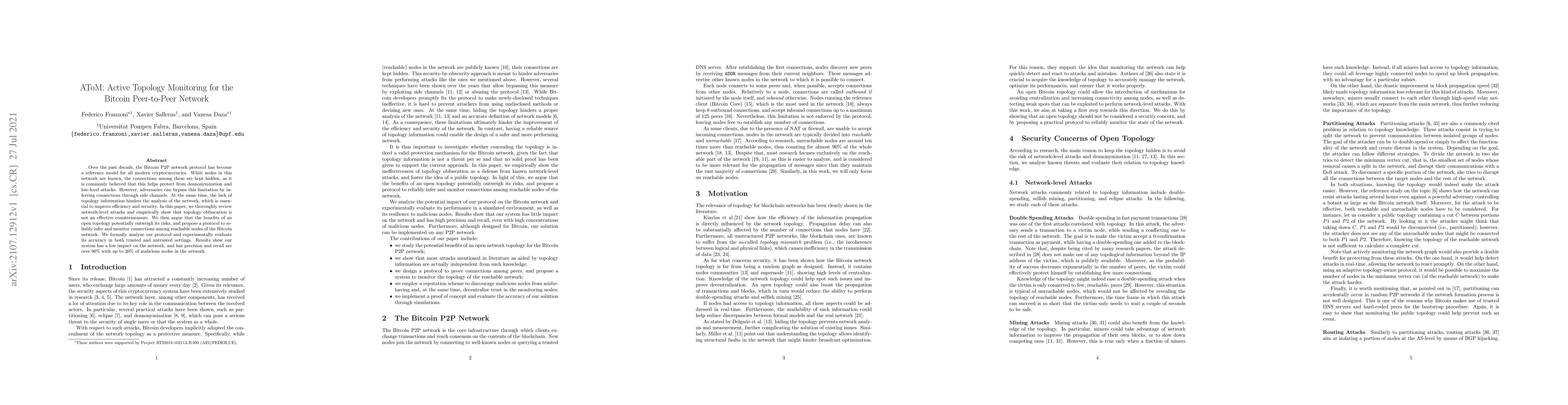 Over the past decade, the Bitcoin P2P network protocol has become a reference model for all modern cryptocurrencies. While nodes in this network are known, the connections among them are kept hidden, as it is commonly believed that this helps protect from deanonymization and low-level attacks. However, adversaries can bypass this limitation by inferring connections through side channels. At the same time, the lack of topology information hinders the analysis of the network, which is essential to improve efficiency and security. In this paper, we thoroughly review network-level attacks and empirically show that topology obfuscation is not an effective countermeasure. We then argue that the benefits of an open topology potentially outweigh its risks, and propose a protocol to reliably infer and monitor connections among reachable nodes of the Bitcoin network. We formally analyze our protocol and experimentally evaluate its accuracy in both trusted and untrusted settings. Results show our system has a low impact on the network, and has precision and recall are over 90% with up to 20% of malicious nodes in the network.