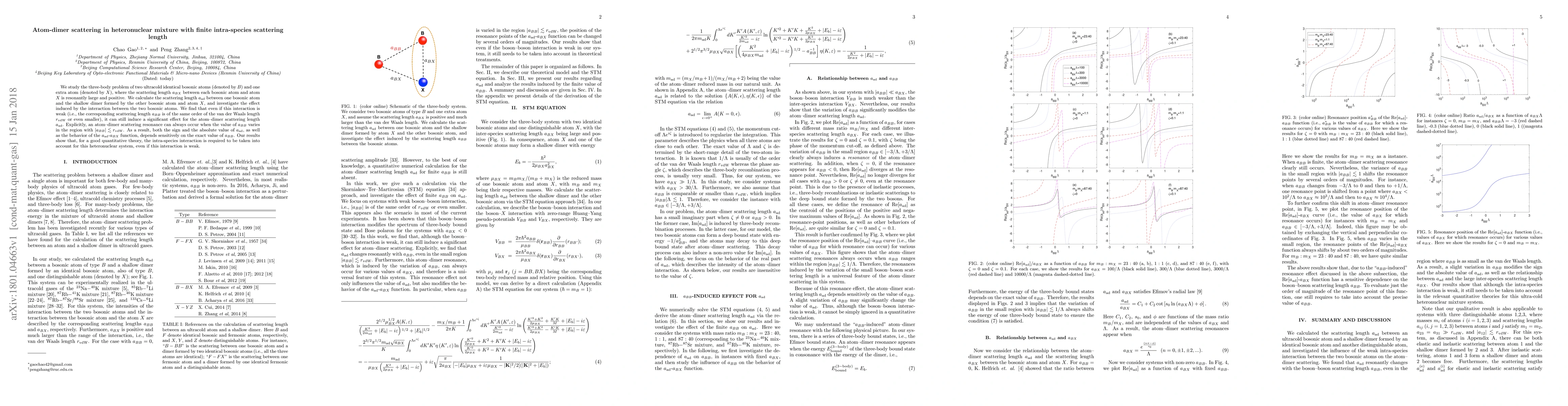 This paper investigates the scattering length between an atom and a dimer formed by two bosonic atoms and an extra atom in a heteronuclear mixture, finding that even weak intra-species interactions can significantly influence the atom-dimer scattering length. The study reveals that atom-dimer scattering resonances can occur even when the intra-species scattering length is comparable to the van der Waals length.