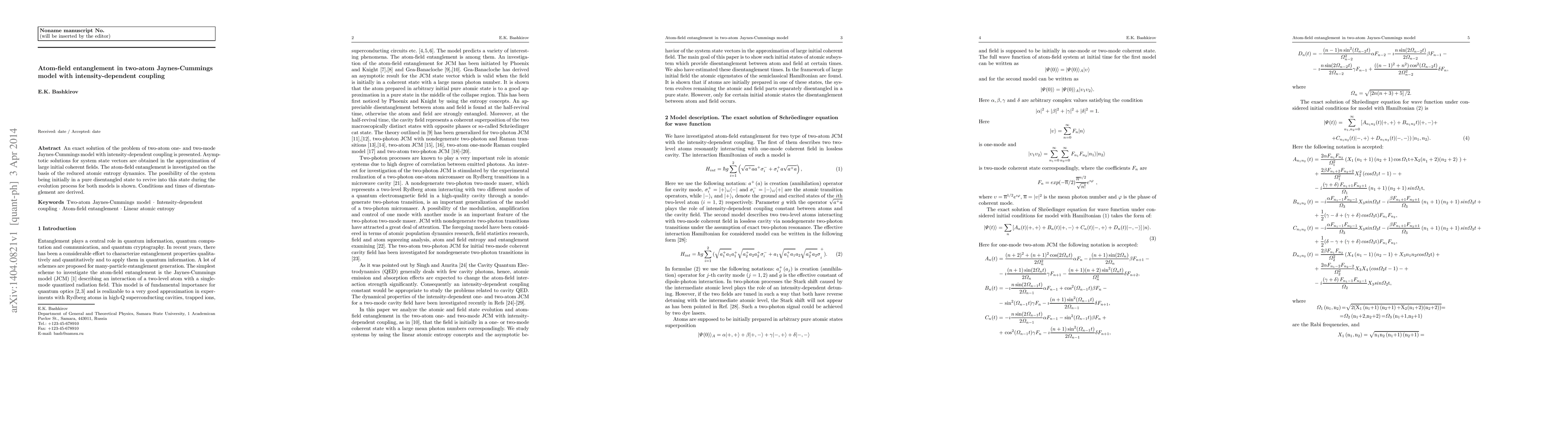This paper presents an exact solution for a two-atom Jaynes-Cummings model with intensity-dependent coupling, exploring atom-field entanglement dynamics. The study reveals conditions under which the system can return to a pure disentangled state after initial entanglement.