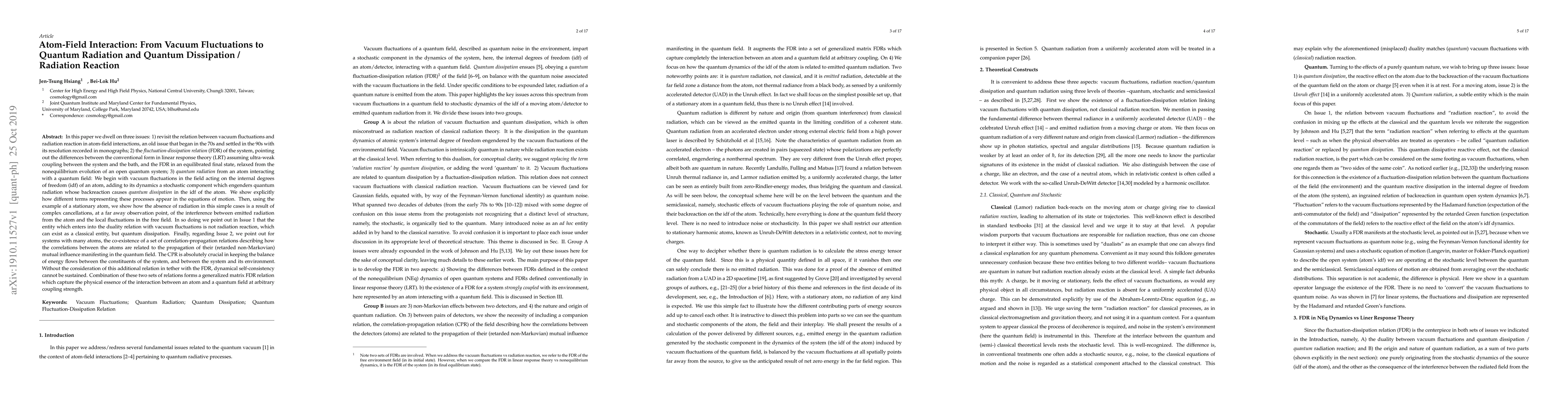 This paper revisits the relationship between vacuum fluctuations and quantum radiation in atom-field interactions, highlighting the differences between fluctuation-dissipation relations in linear response theory and equilibrated states. It also explores quantum dissipation and the role of quantum radiation in atom dynamics, emphasizing the importance of correlation-propagation relations in maintaining energy balance in multi-atom systems.