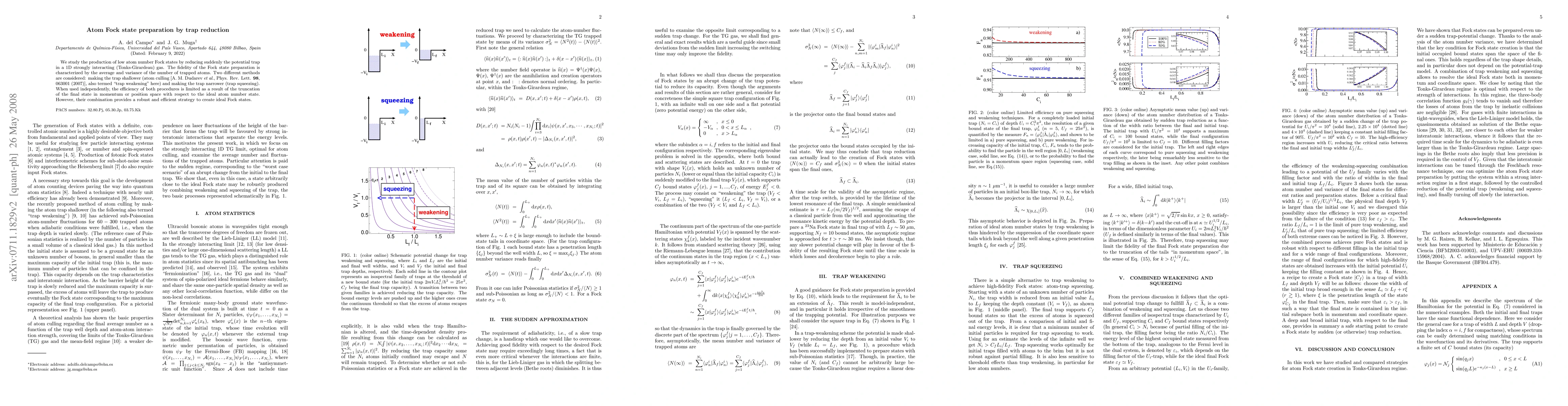 This paper investigates methods to prepare low-atom number Fock states by reducing the potential trap in a 1D Tonks-Girardeau gas, comparing trap weakening and trap squeezing. The combination of both techniques offers a more efficient strategy for creating ideal Fock states despite individual limitations.
