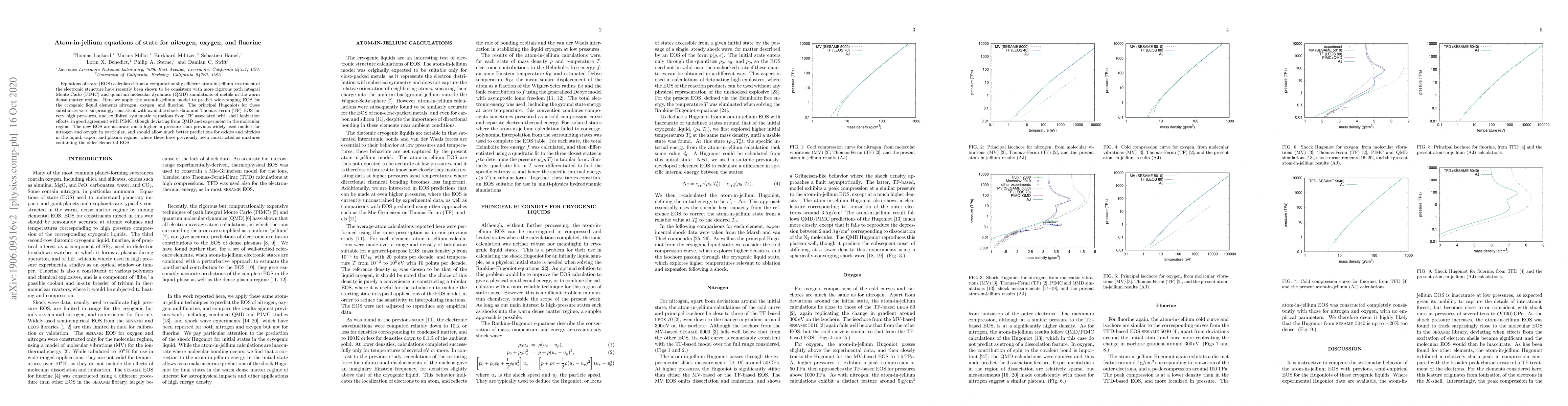 This paper applies an atom-in-jellium model to predict equations of state for cryogenic liquid nitrogen, oxygen, and fluorine, showing good agreement with rigorous simulations and available shock data, while deviating from older models and quantum molecular dynamics in the molecular regime. The new EOS provides more accurate predictions for high-pressure conditions and related compounds.