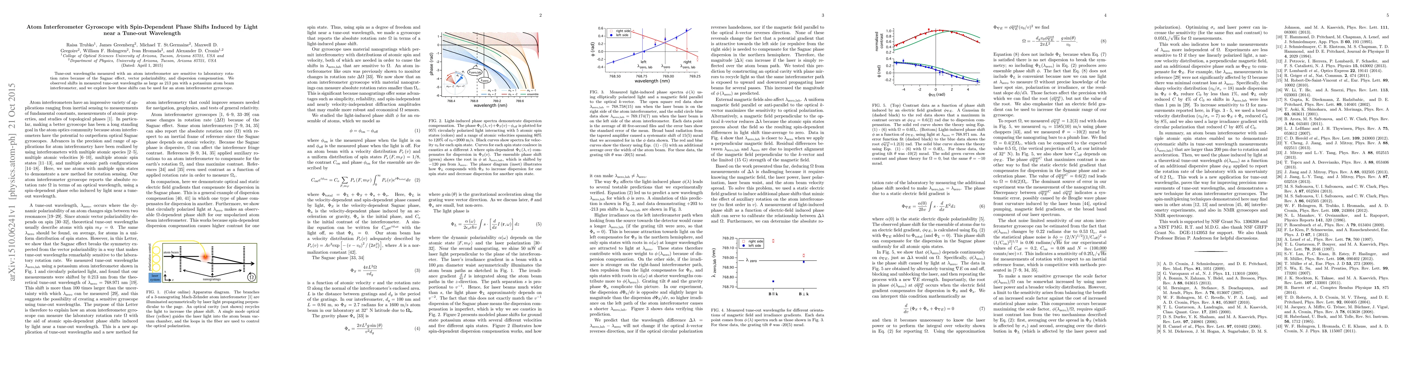 This paper investigates the use of atom interferometer gyroscopes based on spin-dependent phase shifts near tune-out wavelengths, observing shifts up to 213 pm, and explores their potential for precise rotation rate measurements.