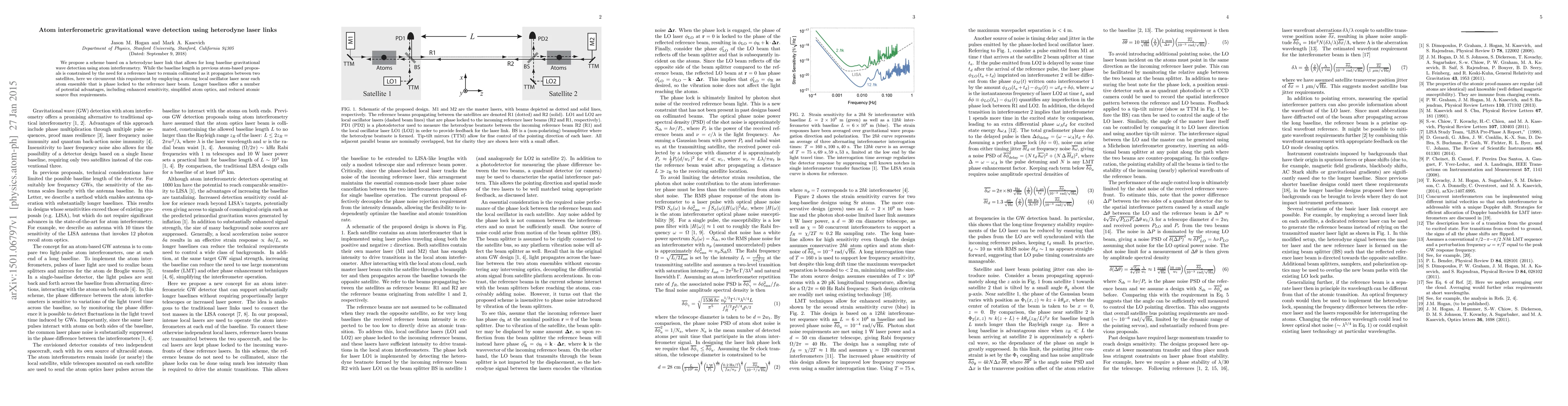 We propose a scheme based on a heterodyne laser link that allows for long baseline gravitational wave detection using atom interferometry. While the baseline length in previous atom-based proposals is constrained by the need for a reference laser to remain collimated as it propagates between two satellites, here we circumvent this requirement by employing a strong local oscillator laser near each atom ensemble that is phase locked to the reference laser beam. Longer baselines offer a number of potential advantages, including enhanced sensitivity, simplified atom optics, and reduced atomic source flux requirements.
