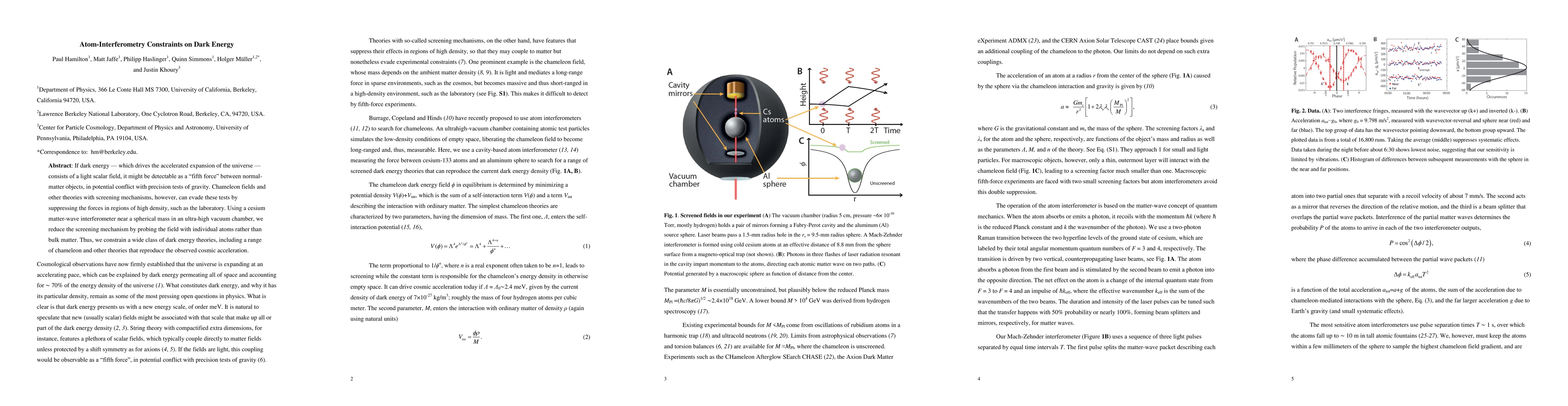 Researchers used a cesium matter-wave interferometer to test dark energy theories that could evade previous tests by suppressing forces in high-density regions. They successfully constrain many dark energy models, including chameleon theories.