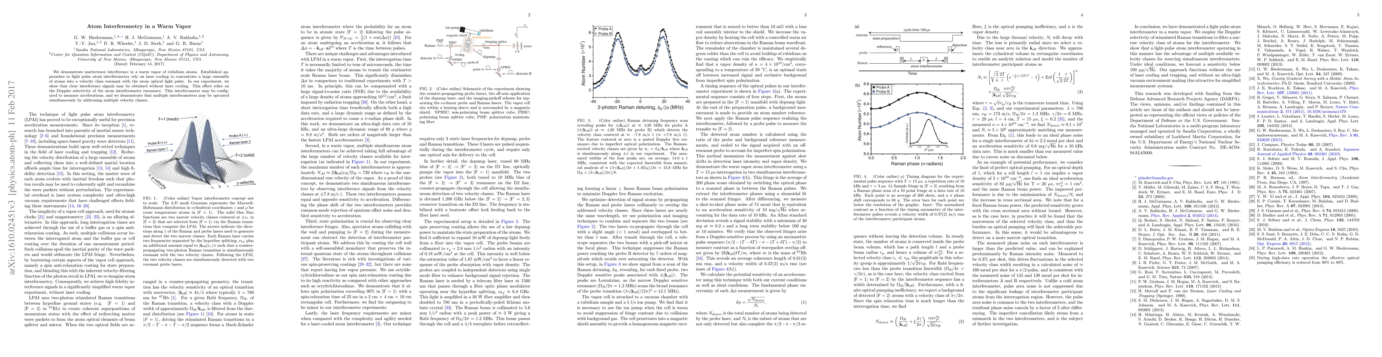 Summary: This paper demonstrates clear matterwave interference in a warm rubidium vapor without laser cooling, leveraging Doppler selectivity for atom interferometry to measure accelerations. Multiple interferometers can be operated simultaneously by addressing different velocity classes.