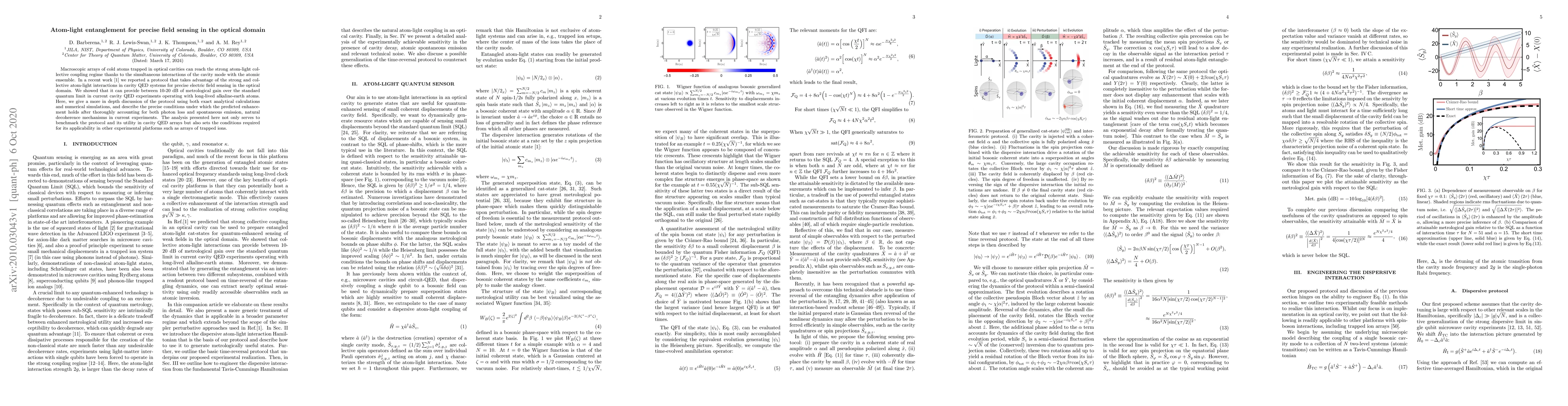 This paper discusses a protocol leveraging strong atom-light coupling in cavity QED systems for precise optical field sensing, achieving significant metrological gain over the standard quantum limit. The authors provide detailed analytical and numerical analyses to determine the conditions necessary for the protocol's effectiveness, considering photon loss and spontaneous emission.