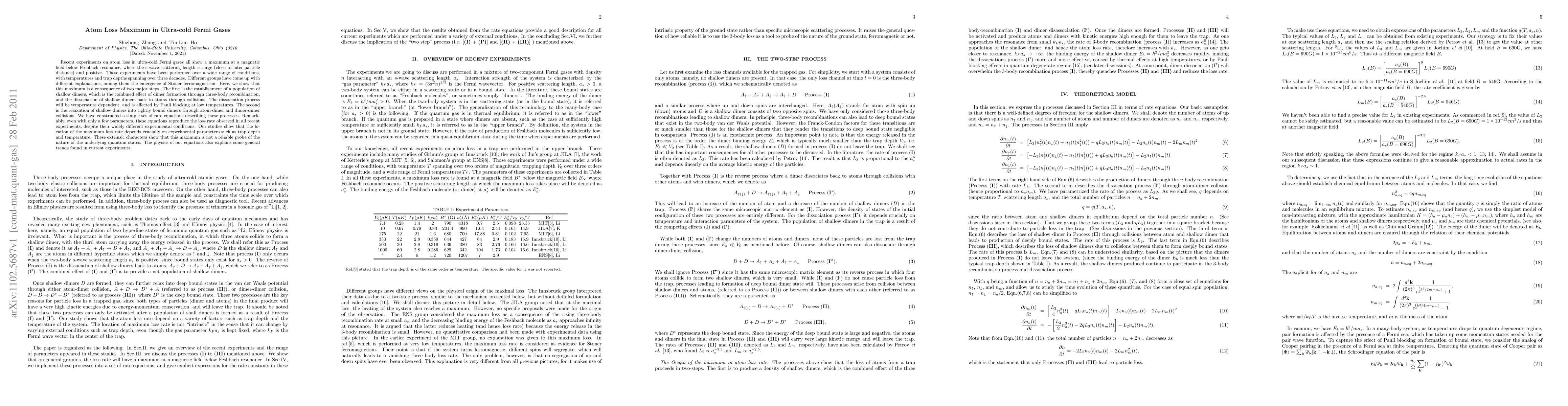 This study reveals that the atom loss maximum in ultra-cold Fermi gases, previously attributed to Stoner ferromagnetism, is actually due to two processes: the formation and dissociation of shallow dimers, and their relaxation into tightly bound dimers. A simple set of rate equations successfully models these processes, explaining observed loss rates across various experimental conditions. The location of this maximum is found to depend on factors like trap depth and temperature, suggesting it's not a definitive indicator of quantum states.