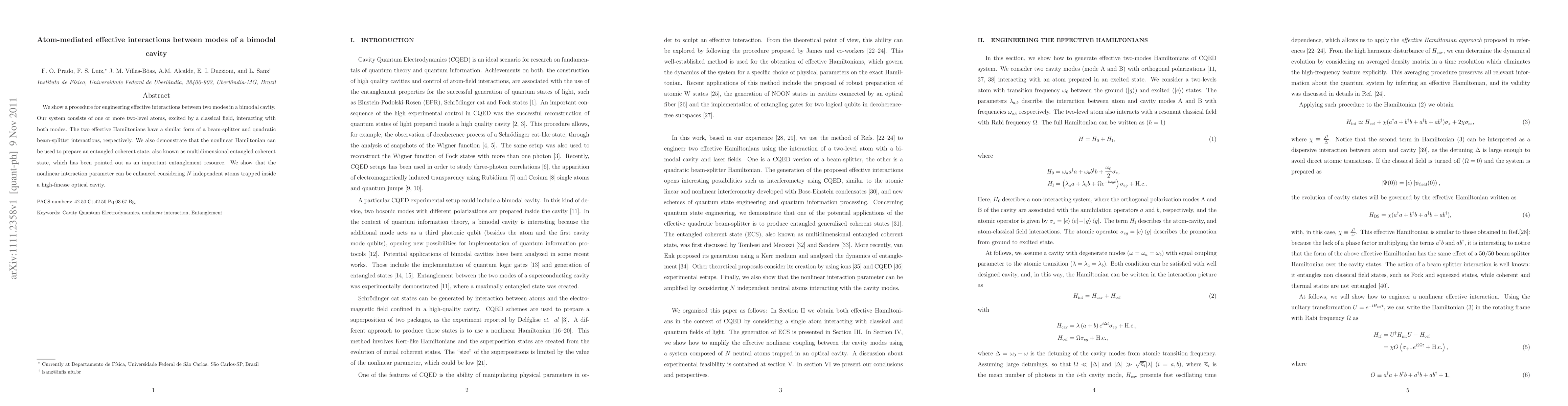 This paper presents a method to engineer effective interactions between two modes in a bimodal cavity using one or more two-level atoms excited by a classical field. The study demonstrates the preparation of a multidimensional entangled coherent state and shows how the nonlinear interaction parameter can be enhanced with multiple atoms in a high-finesse optical cavity.